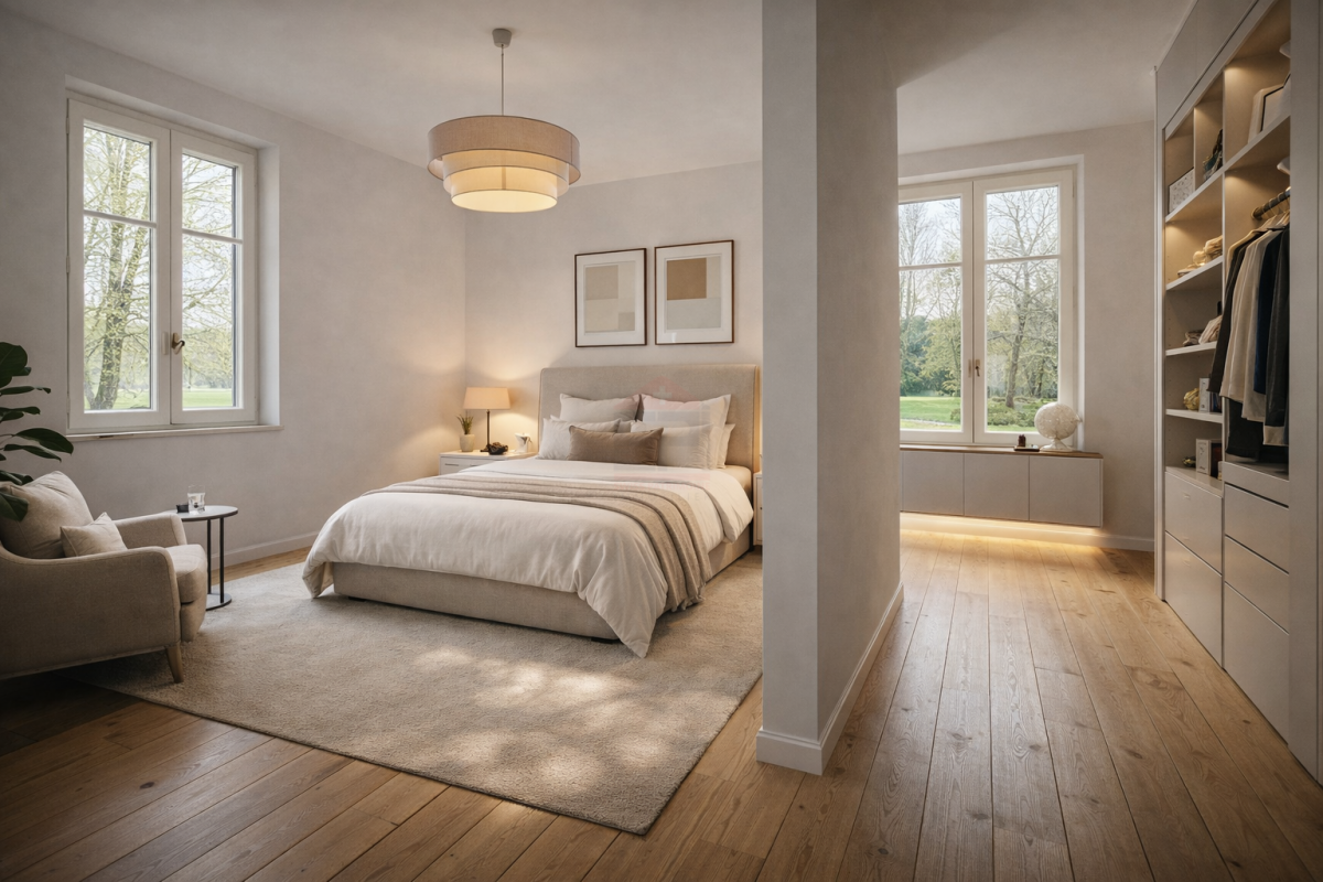 Au dernier niveau, une spacieuse suite s?accompagne d?un espace ouvert modulable, idéal en dressing, bibliothèque ou chambre d?appoint, offrant une flexibilité.