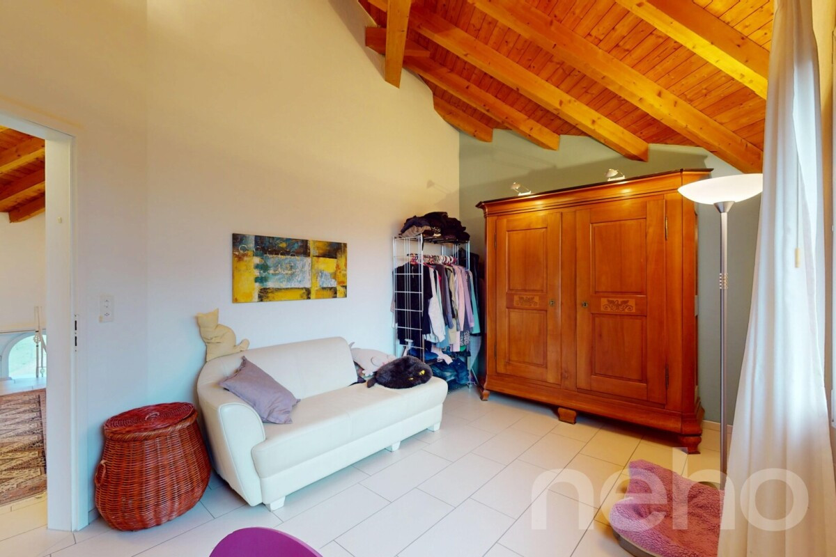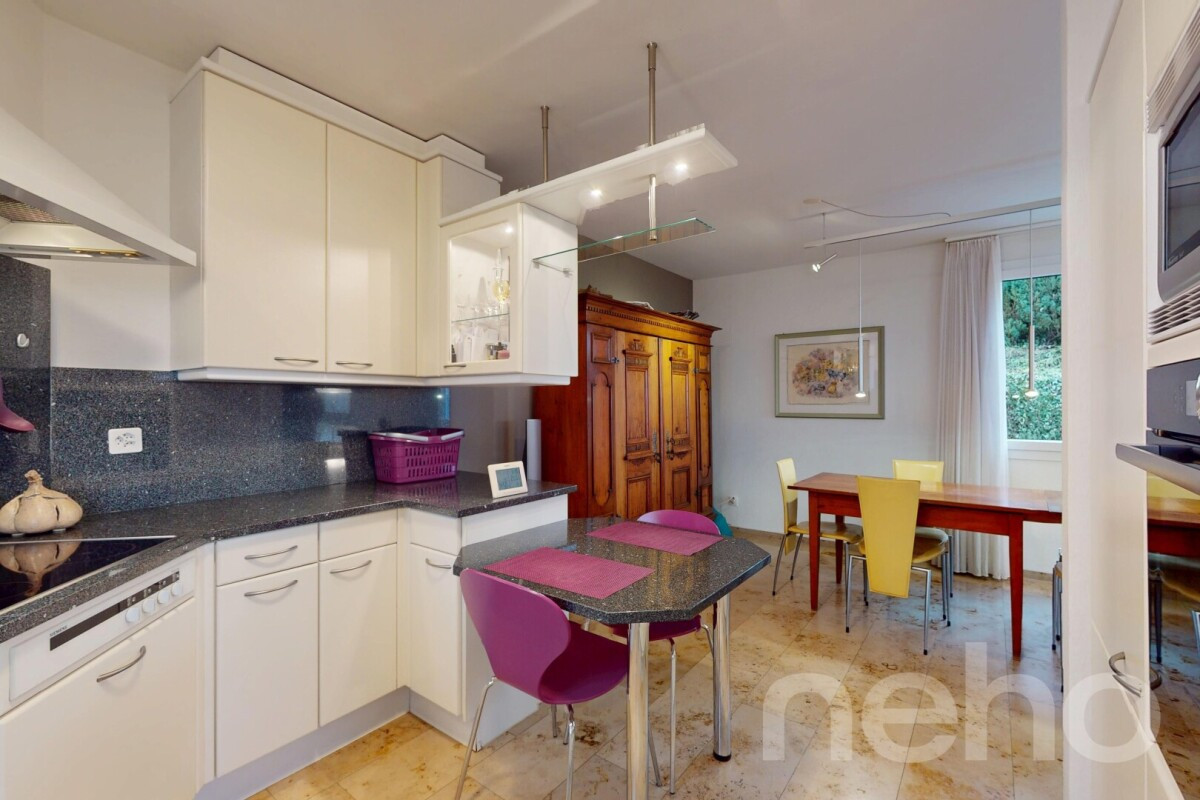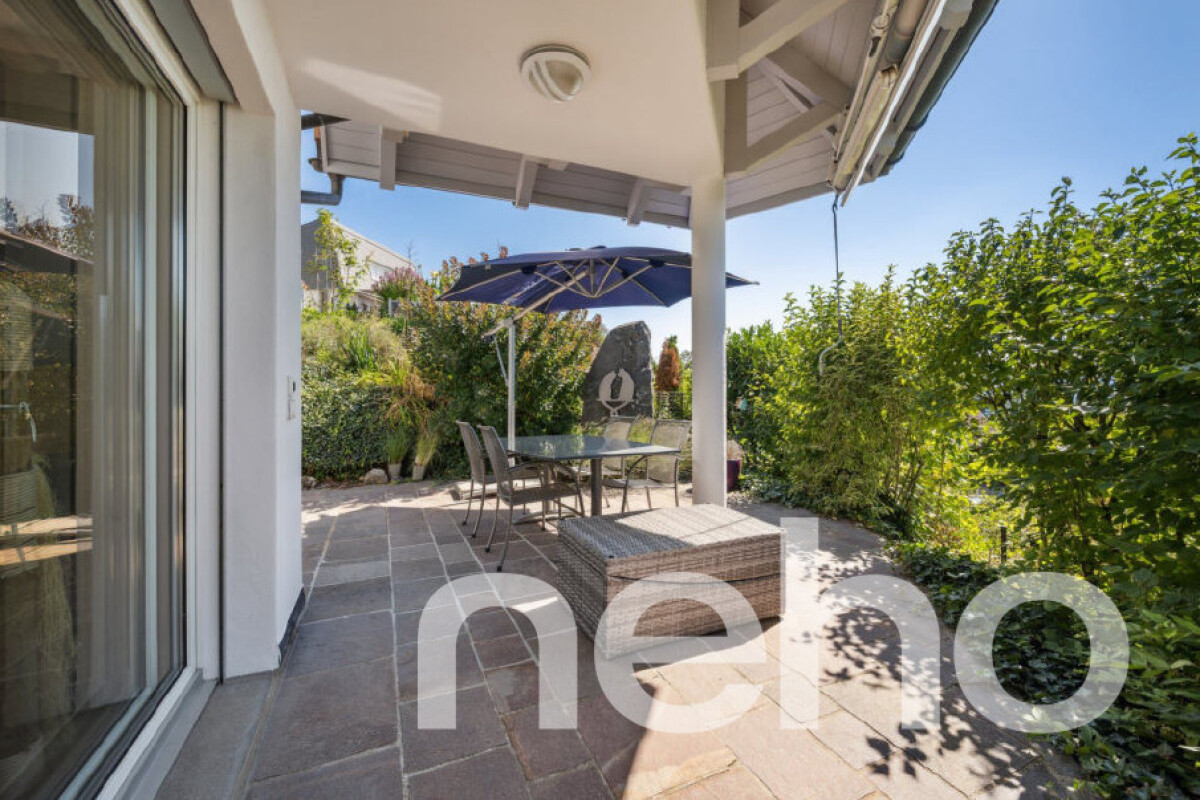 Lichtdurchflutetes Zuhause mit Galerie, Schwedenofen und GartenidylleDieses einzigartige 5.5-Zimmerhaus in sonniger Hanglage bietet 174 m² Wohnfläche sowie 98 m² Terrasse und liegt an ruhiger Privatstrasse ohne Durchgangsverkehr ? direkt angrenzend an unverbaubares Schutzgebiet mit Wiese und Wald. Die grosszügige Gartenanlage ist naturnah gestaltet mit schattenspendenden Bäumen, Zierpflanzen,...