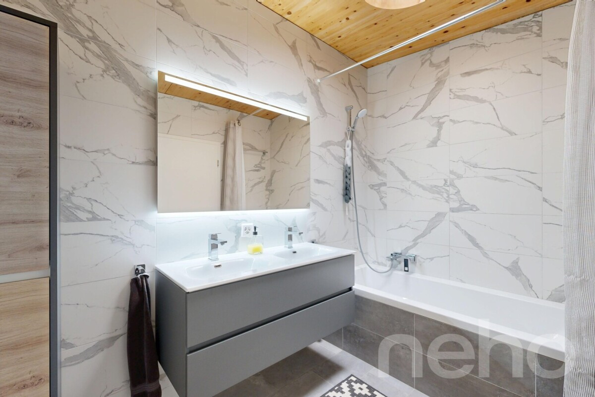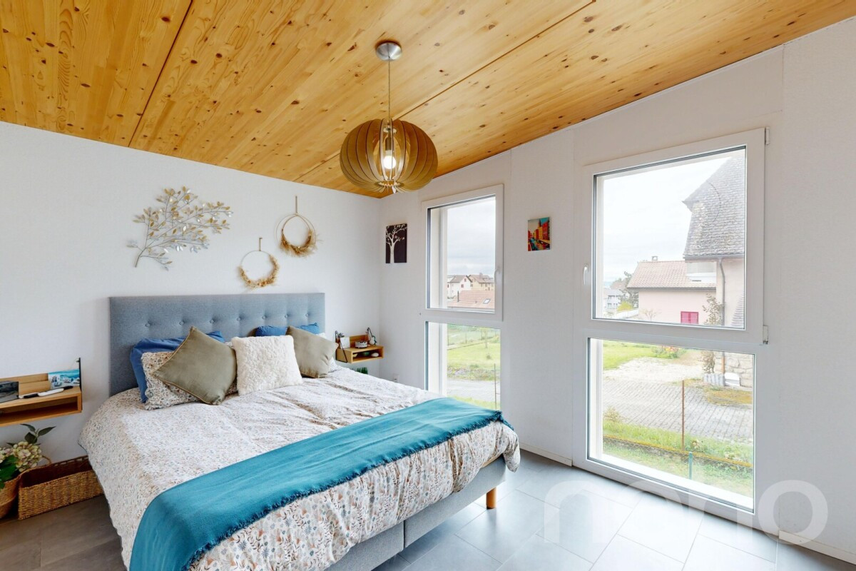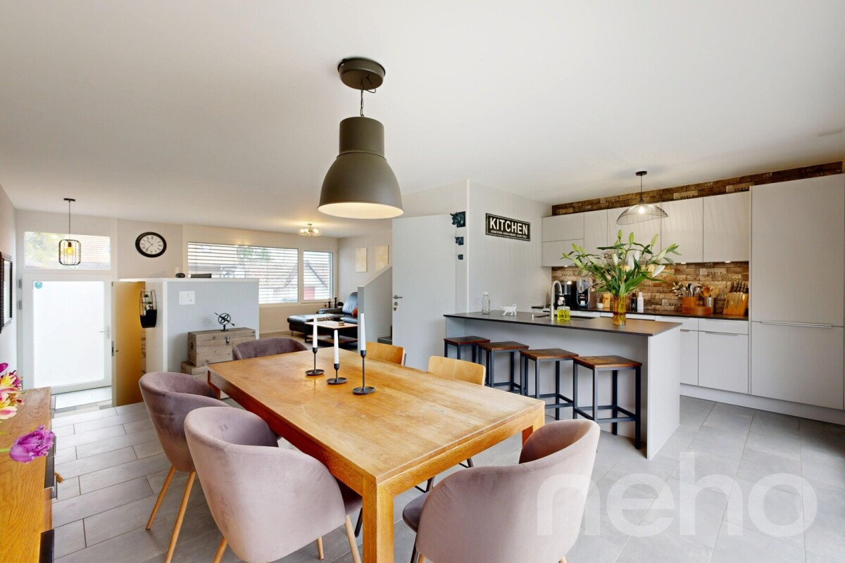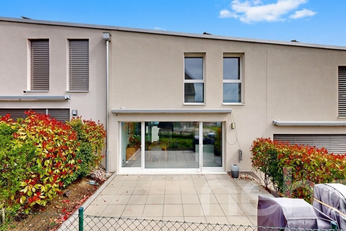 Charmante maison mitoyenne construite en 2022, en état neuf, réalisée avec des matériaux de grande qualité et des finitions soignées.Elle bénéficie d'un système de chauffage performant par pompe à chaleur air-eau, complété par des panneaux photovoltaïques installés sur un toit végétalisé, assurant confort et efficience énergétique.La maison séduit par sa belle terrasse, offrant un agréable dégagement avec vue sur le lac, idéale pour profiter pleinement des beaux jours dans un cadre paisible et verdoyant.La propriété dispose également d'une spacieuse cave, de plusieurs places de parc extérieures ainsi que d'une borne de recharge pour véhicule électrique.Idéalement située dans un quartier calme et résidentiel, à proximité immédiate de toutes les commodités, cette maison conviendra parfaitement à une famille à la recherche de confort, de modernité et de sérénité, tout en profitant d'un environnement privilégié entre lac et nature.