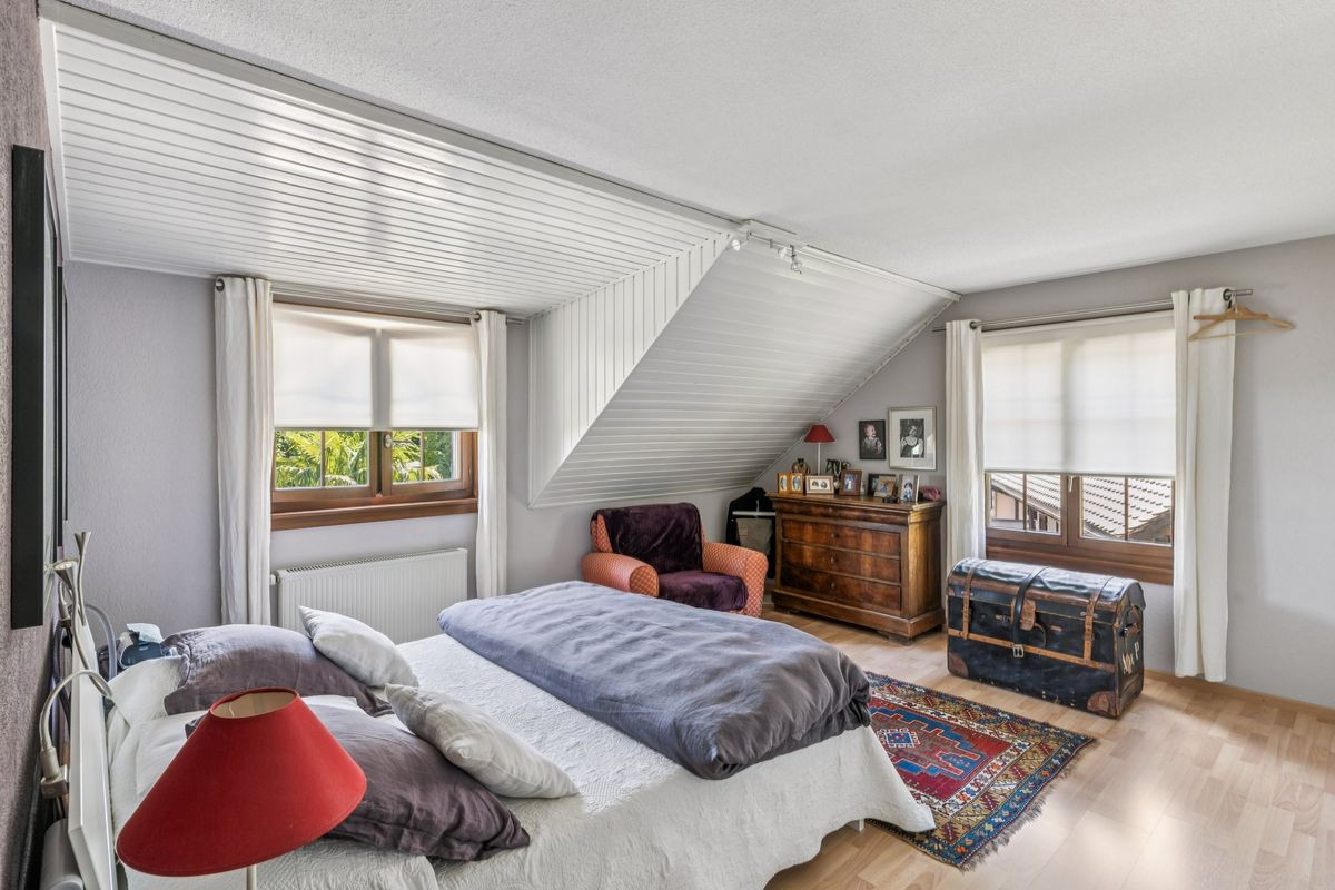 Nichée dans un quartier particulièrement recherché de Bevaix, en lisière de forêt et à l'abri de toute nuisance, cette villa jumelée de 160 m² offre un cadre de vie aussi paisible que privilégié.