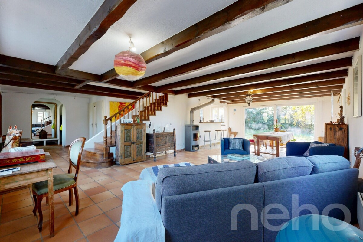 Construite en 1979, cette maison dégage un charme authentique grâce à ses poutres apparentes, sa luminosité naturelle et son poêle à bois. Les espaces sont généreux et modulables, avec une mezzanine habitable, une grande cave et de nombreux rangements.Le très grand jardin, peu exposé aux vis-à-vis et orienté Sud-Ouest, offre un ensoleillement optimal tout au long de la journée, idéal pour une famille.La maison nécessite une rénovation complète : une belle opportunité de créer votre foyer sur mesure tout en conservant l'âme du lieu.Un garage double et plusieurs places extérieures complètent le bien.