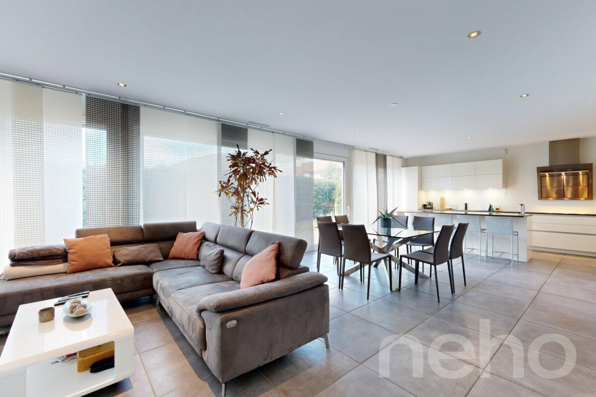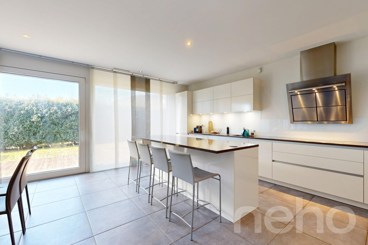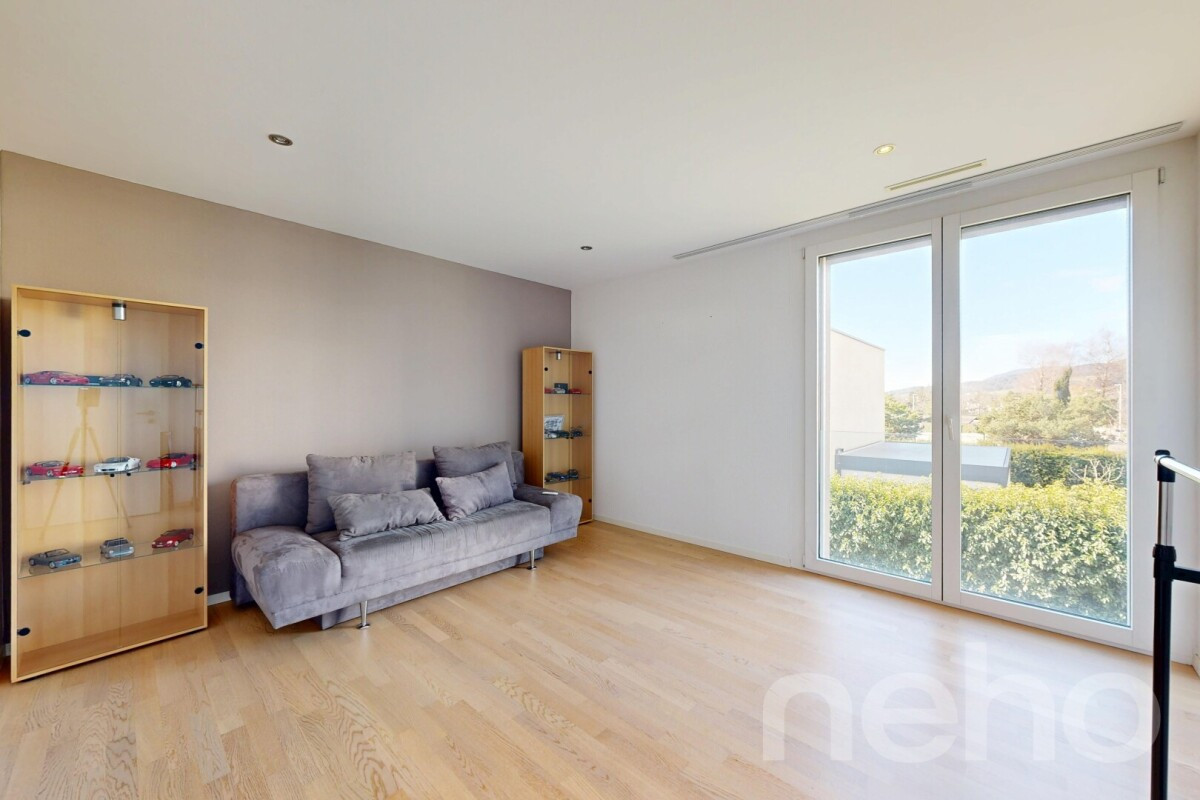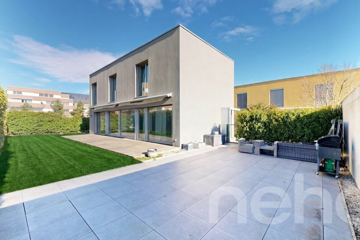 Superbe villa contemporaine de 4,5 pièces d'environ 140 m², avec possibilité d'aménager une 5? pièce, idéalement située à proximité des écoles, des transports publics et du lac.Érigée sur une parcelle de 476 m² au c?ur d'un quartier résidentiel calme, cette maison séduit par sa fonctionnalité et sa belle luminosité. Entièrement excavée, elle offre un vaste espace supplémentaire ainsi qu'une buanderie pratique.Dotée d'un système de ventilation double flux et d'un chauffage à distance combinant gaz et pellets, elle garantit un excellent confort thermique et une efficience énergétique optimale.À l'extérieur, vous profiterez d'un agréable jardin clôturé et arboré, ainsi que de trois terrasses invitant à la détente. Un couvert pour deux voitures avec espace de rangement, complété par deux places de stationnement extérieures, vient parfaire ce bien.Cette propriété saura séduire les amateurs de modernité, de confort et de qualité de vie, à proximité de toutes les commodités.