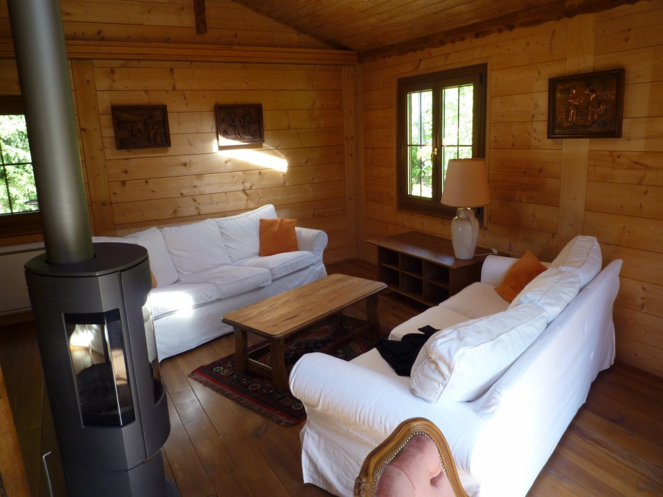Incluses, places de parc devant le chalet pour plusieurs véhicules. Chauffage : poêle + radiateur électrique