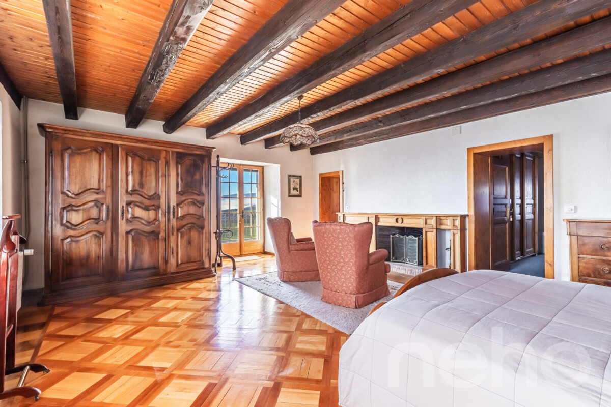 Grande propriété villageoise entretenue avec soin au fil des années, elle séduit immédiatement les amoureux des vieilles bâtisses au caractère affirmé et aux volumes généreux. Elle offre un charme authentique et une atmosphère chaleureuse rare, la vue est dégagée et splendide sur la campagne environnante avec le Jura en toile de fond, les espaces intérieurs sont vastes et confortables permettant à chacun de trouver sa place que ce soit pour une grande famille ou pour le télétravail.La maison dispose d'un double salon avec cheminée propice aux moments de convivialité, d'une cuisine moderne avec salle à manger ouvrant sur une belle véranda idéale pour profiter de chaque saison, une terrasse ensoleillée prolonge agréablement l'espace de vie et donne accès à un grand jardin.A l'étage se trouvent quatre chambres dont une suite parentale avec salle de bain ainsi que deux autres salles d'eau ainsi qu'un espace ouvert pouvant servir de bureau par exemple. Une grande terrasse donne également accès à l'extérieur depuis là. Les combles présentent quant à eux, un très beau potentiel d'aménagement selon les envies.Un appartement indépendant sur deux niveaux complète l'ensemble et se prête parfaitement à un rendement locatif, à l'accueil de la famille ou à un usage professionnel.La propriété dispose également d'un garage double et d'une cour permettant de stationner plusieurs voitures.La situation au sein de la commune de Burtigny est idéale pour concilier calme et praticité, le village offre un cadre de vie paisible tout en restant à proximité immédiate de Gland et de Nyon où se trouvent commerces écoles restaurants et infrastructures sportives, un service de bus dessert les gares de Gland et de Nyon facilitant ainsi les déplacements quotidiens en transports publics, l'accès à l'autoroute est également très rapide avec un temps de trajet d'environ 10 minutes en voiture ce qui permet de rejoindre aisément les principaux axes et les centres urbains de la région.