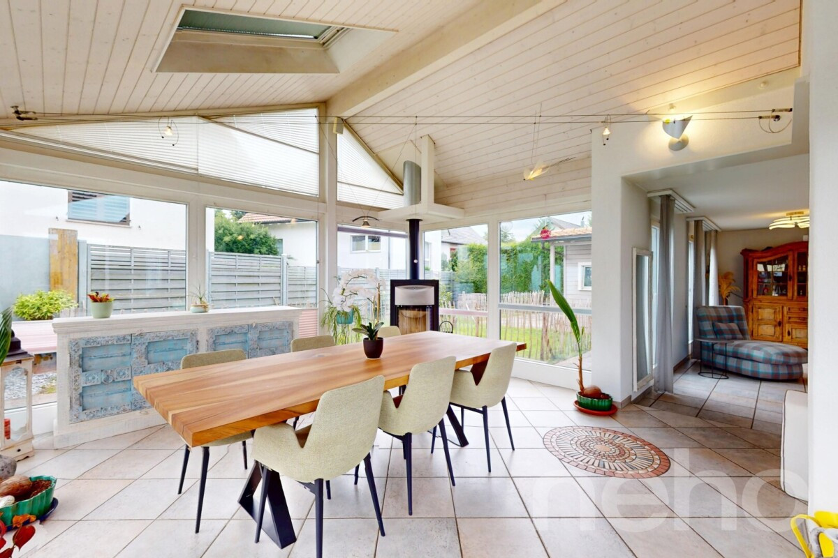 Bereits beim Betreten des Erdgeschosses empfängt Sie ein heller Eingangsbereich mit Garderobe und angrenzendem Gäste-WC mit Dusche. Der Wohnbereich ist grosszügig und lichtdurchflutet, mit direktem Zugang zur grossen Terrasse und dem Garten. Zwei separate Essbereiche - einer davon im beheizten Wintergarten - mit reichlich Platz für gesellige Abende mit Familie oder Freunden. Die angrenzende Küche ist funktional gestaltet und ermöglicht einen praktischen Ablauf im Alltag. Ein zusätzliches Zimmer im Erdgeschoss eignet sich ideal als Kinder-/ Gästezimmer, Büro oder Hobbyraum.