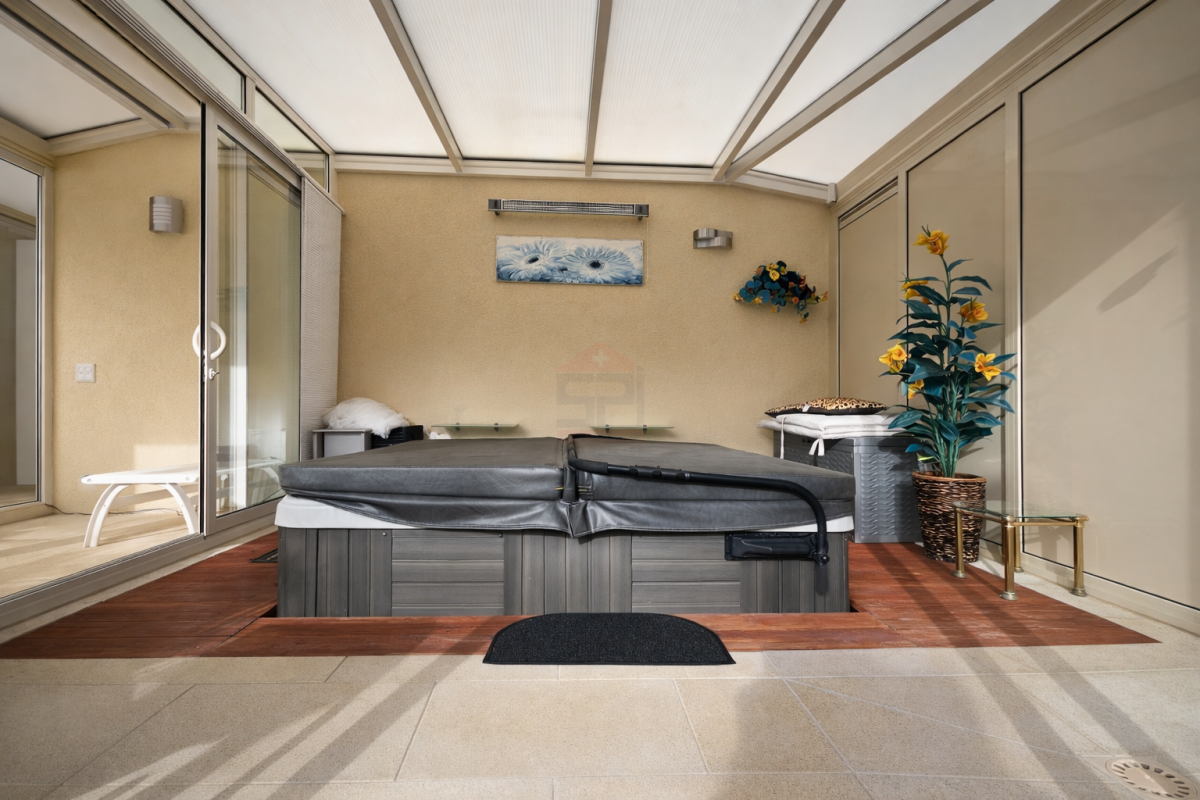 Les extérieurs, parfaitement entretenus, dévoilent un magnifique jardin plat et arboré, exposé Sud-Ouest. Une agréable terrasse couverte permet de profiter pleinement des beaux jours, tandis qu'un espace bien-être entièrement vitré, équipé d'un grand jacuzzi et d'une douche extérieure, invite à la détente en toute saison.