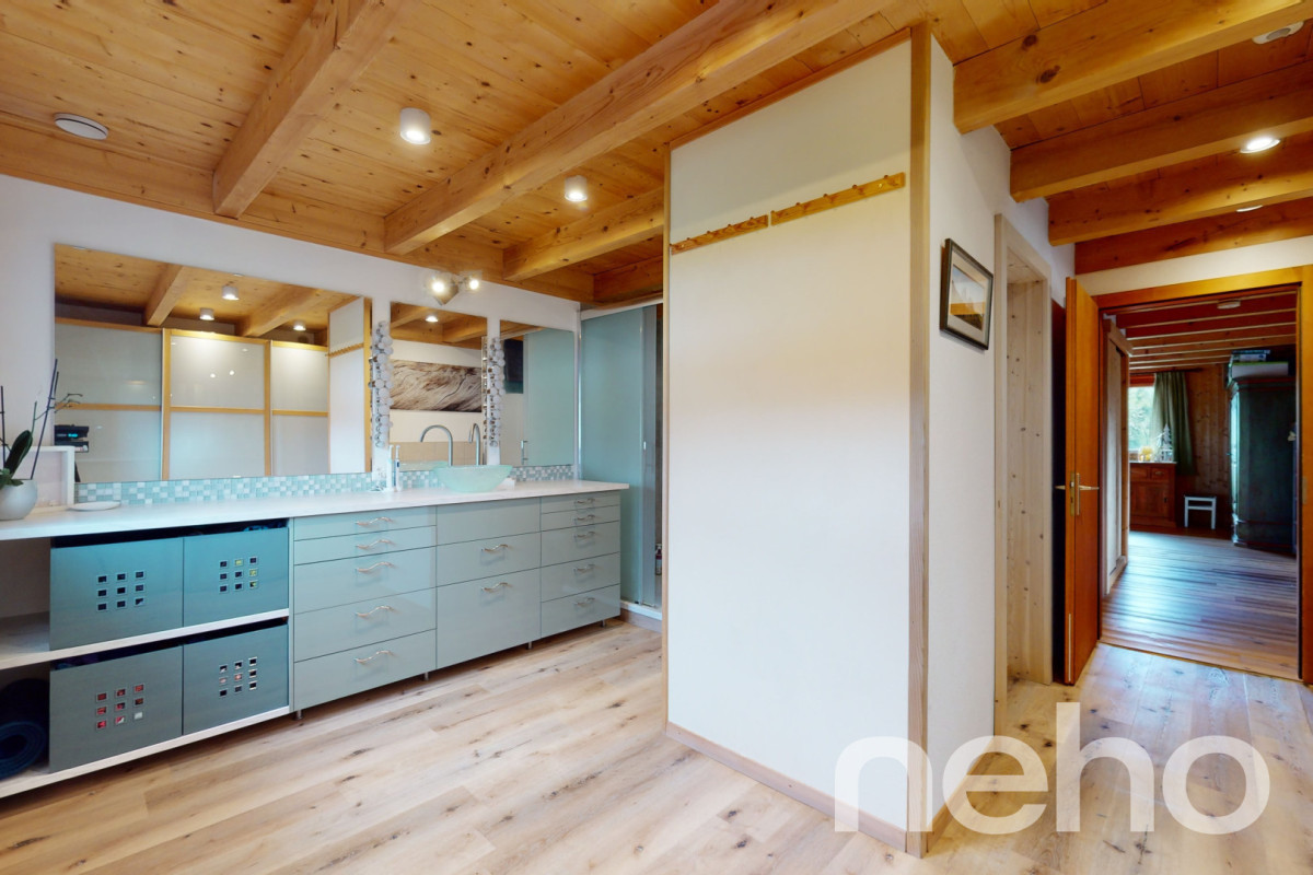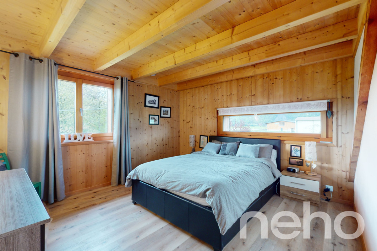 Exclusif: Chalet de 5 chambres avec une belle orientation plein sudSitué dans un quartier à quelques pas du centre du Village, ce chalet construit en 1983 a été agrandi en 2003 avec une annexe de deux chambres et deux salles d'eau.Le chalet dispose au total de 119 m² de surface habitable, répartis en 6.5 pièces, dont 4 chambres, avec une salle de bain, une salle de douche et un WC visiteurs....