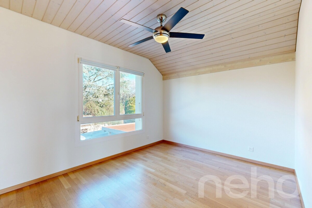 Idéalement située dans un quartier résidentiel calme et recherché, cette spacieuse villa jumelle offre un environnement privilégié, à seulement quelques minutes de Genève.Baignée de lumière et conçue pour les familles, elle séduit par ses volumes généreux et sa distribution fonctionnelle. La maison comprend plusieurs chambres confortables, dont une suite parentale, de vastes espaces de vie, ainsi que 2 pièces supplémentaires polyvalentes en sous-sol.Les extérieurs invitent à la détente avec une grande terrasse, un jardin privatif et un couvert double pour véhicules. L'accès à la propriété est sécurisé par un portail automatique.