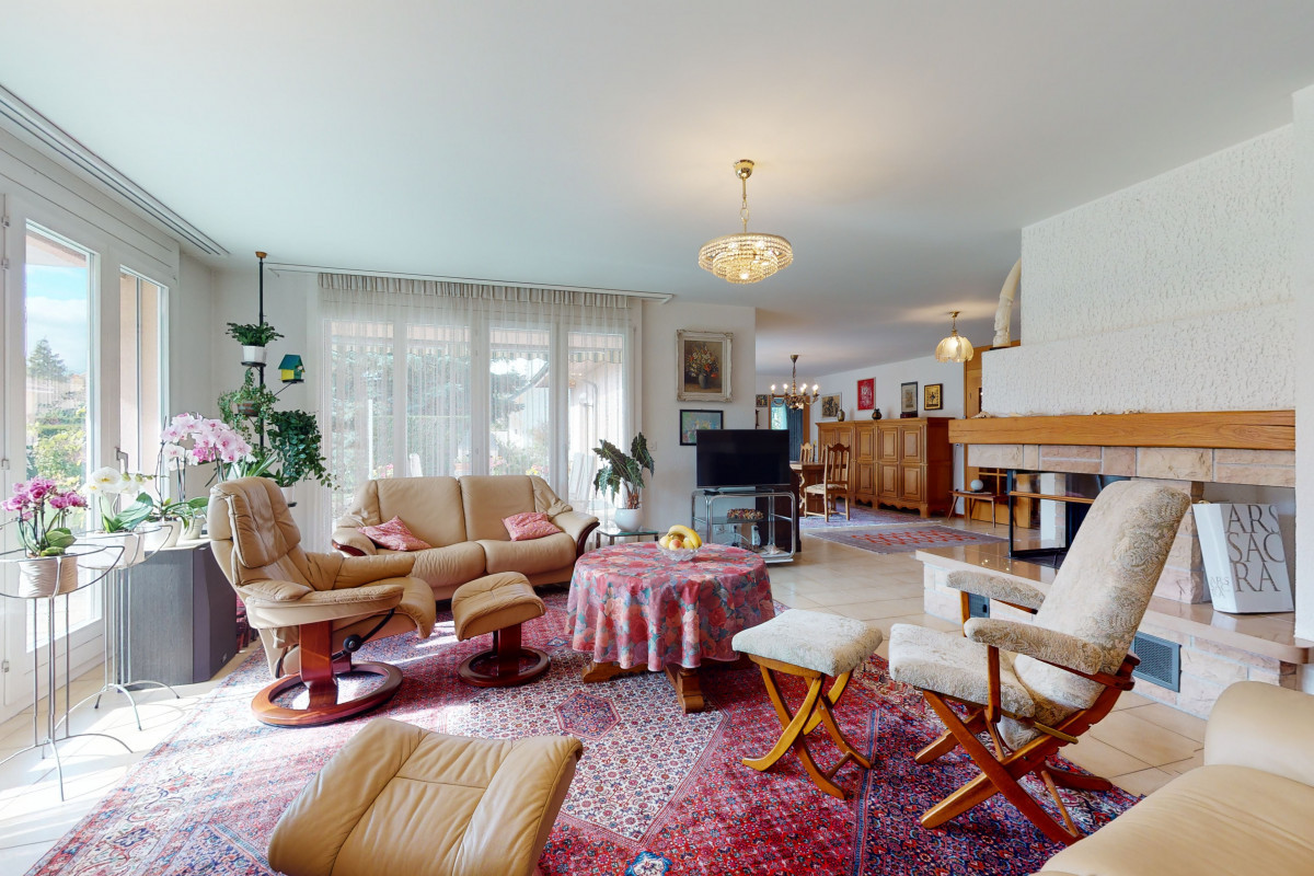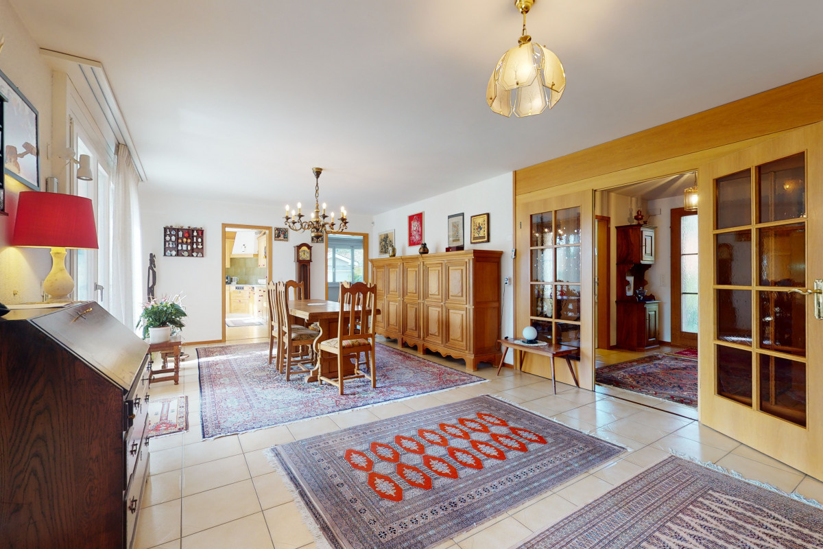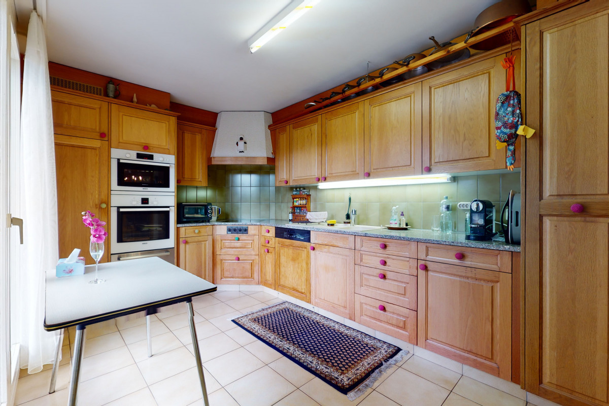 Au coeur d'une zone villa, superbe villa. Au rez-de-chaussée, spacieuse cuisine fermée, 2 chambres, dont une chambre avec salle de bain attenante, une seconde salle de douche, salle à manger et grande pièce à vivre qui donne accès sur la terrasse et le jardin. A l'étage, 3 chambres à coucher, 2 salles de bain. Au sous-sol, une buanderie, une salle de bain, une cave, une cave à vin et un accès direct au garage. La pompe-à-chaleur a été changée en 2015.