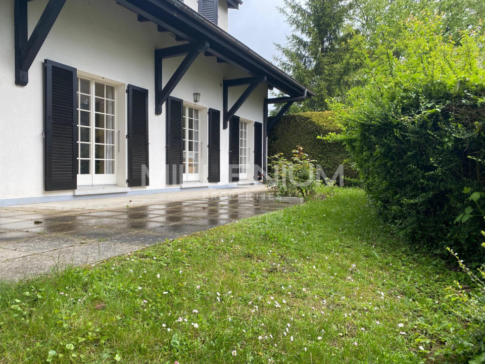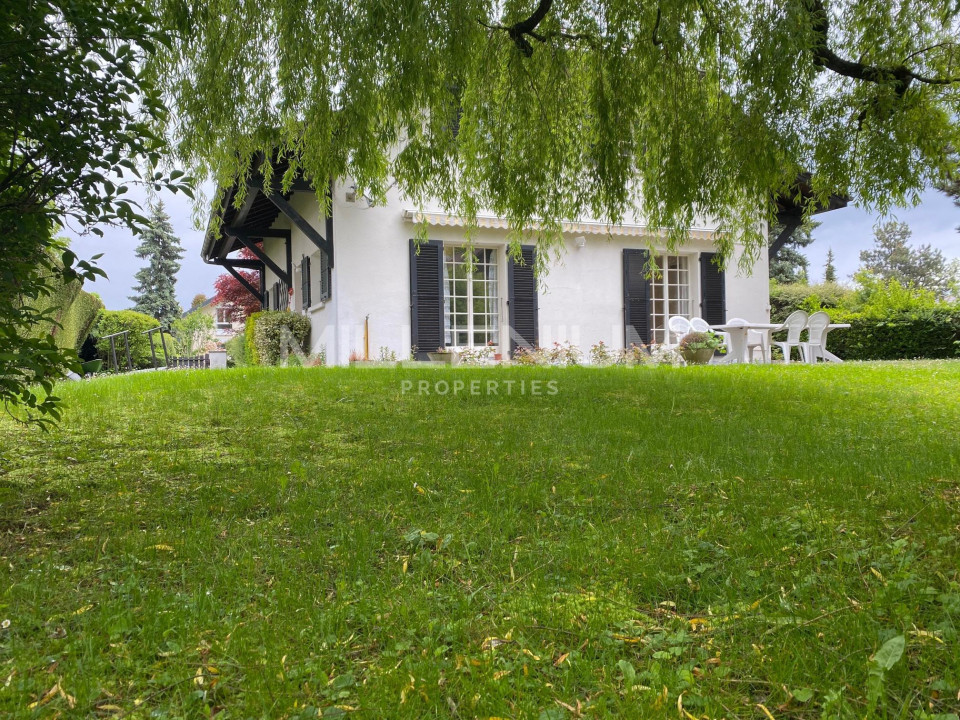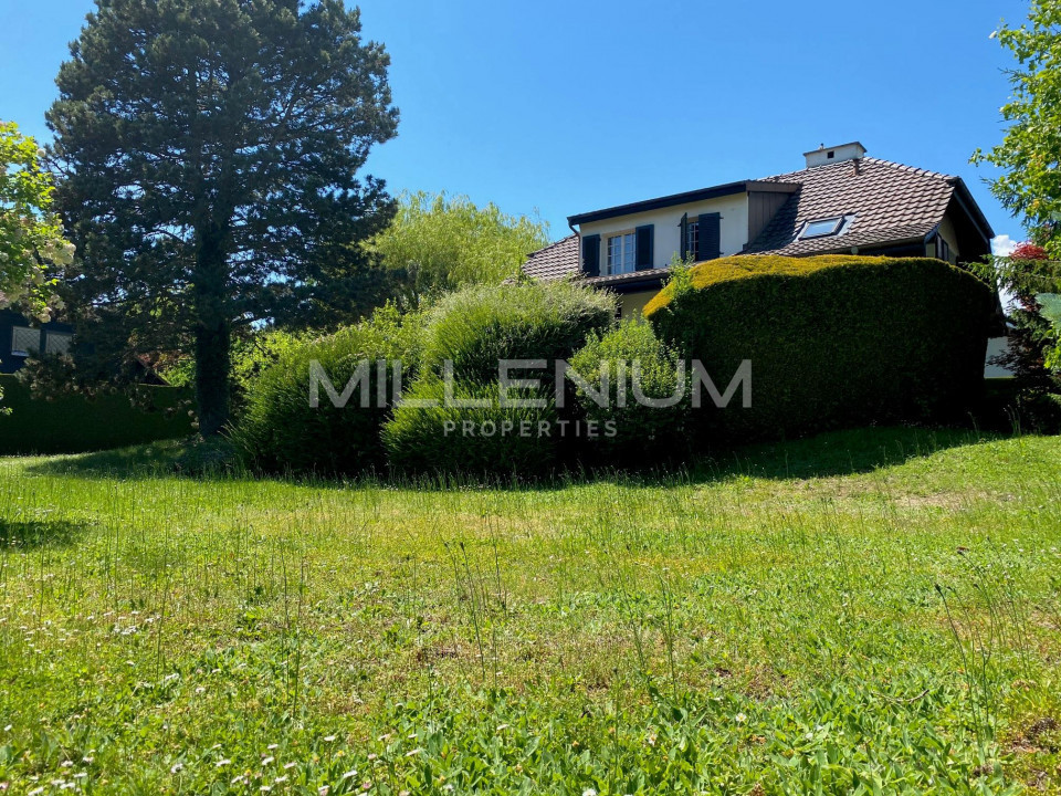 En extérieur : Un beau jardin piscinable et bien entretenu entoure cette villa avec deux terrasses.