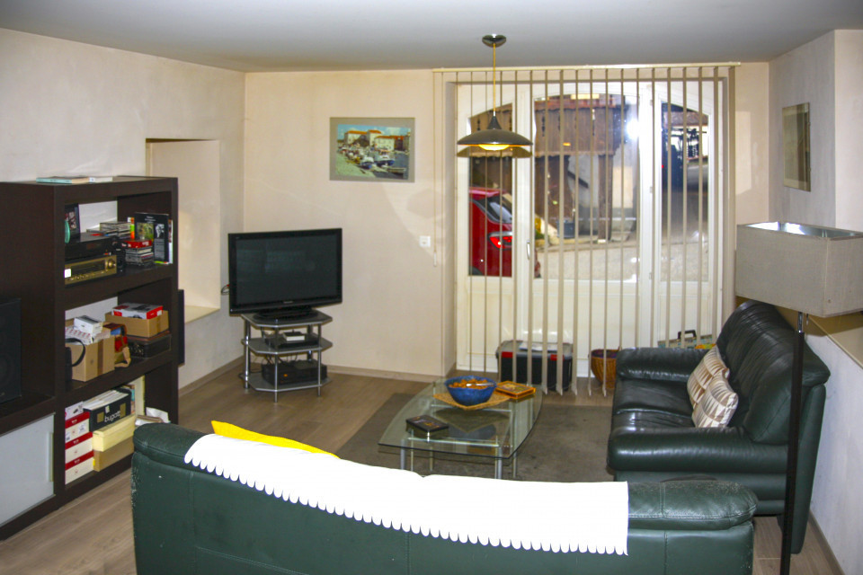 Au Rez : spacieux 2 ½, grande cuisine habitable et sa petite terrasse, salon, salle de bain et double WC, hall avec placards, grande chambre à coucher.