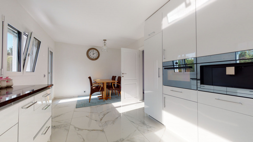 Cette maison, de 225m², lumineuse, entièrement rénovée en 2020-21 et sise sur une parcelle d'env 750m² suscite immédiatement un sentiment de quiétude et de sérénité à son visiteur, l’espace, la clarté et la luminosité venant compléter ce subtil équilibre.