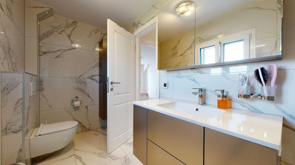 À noter que deux places de parc couvertes et trois places de parc extérieures complètent de manière pratique ce bien d’exception.