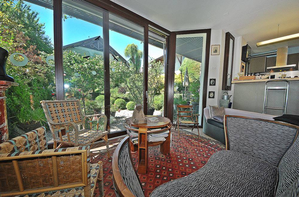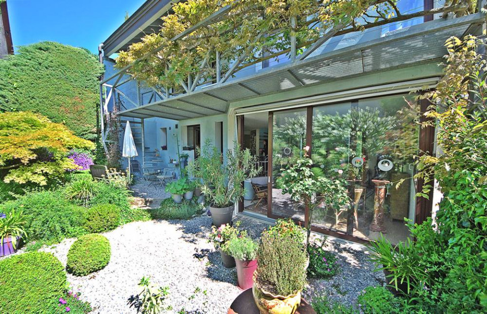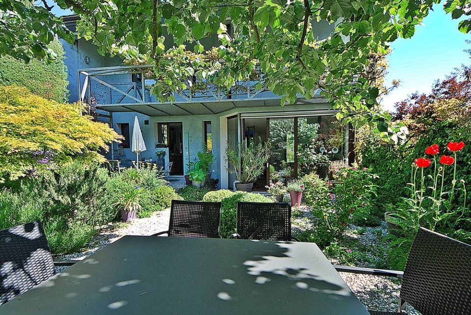 Au coeur du pittoresque village de Dardagny, connu pour ses vignes et ses magnifiques panoramas sur la campagne genevoise, coupé de la frénésie du centre ville, cette villa d'artiste se trouve nichée au calme d'une impasse.
