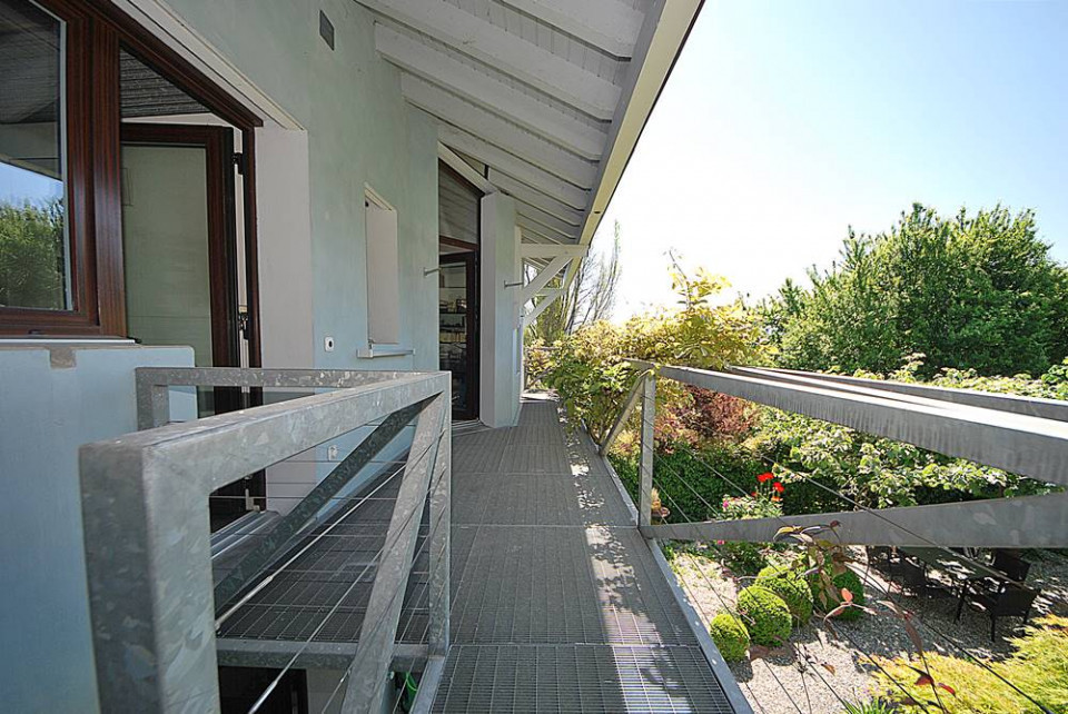 Au 1er étage les espaces nuit offrent une belle chambre parentale (avec sa salle de bains) et accès au balcon surplombant le jardin.