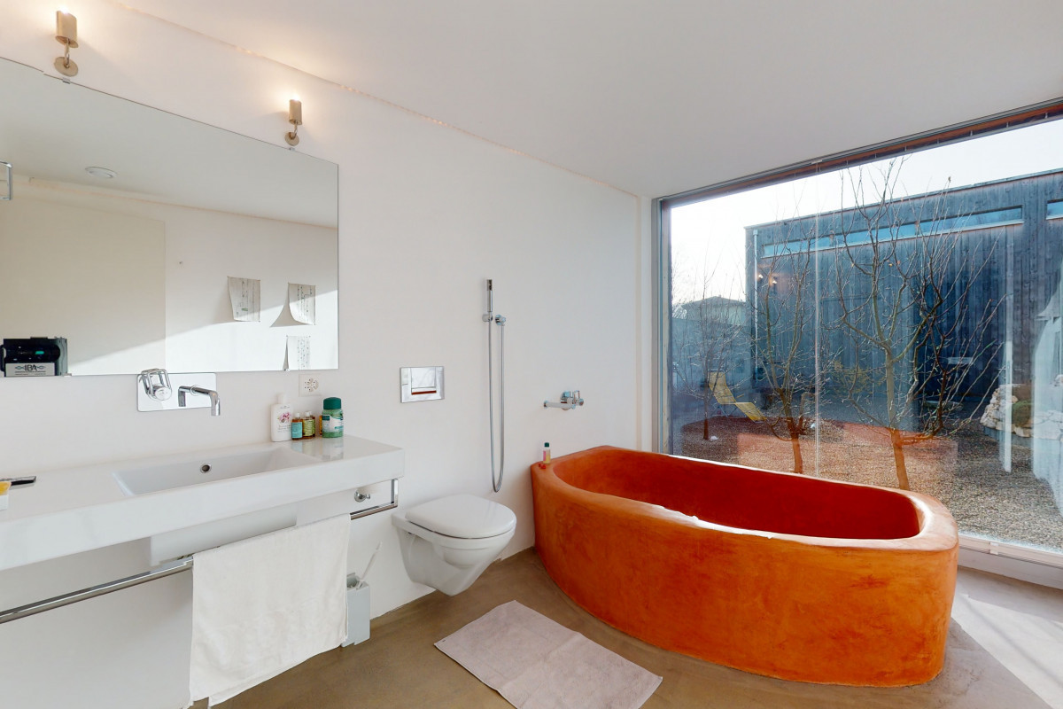Cette splendide maison d'architecte est idéalement conçue et très lumineuse. Elle offre de splendides volumes avec ses ouvertures de l'étage supérieur sur l'étage inférieur. Tous les matériaux sains et faciles à entretenir ont été sélectionnés en fonction de la biologie du bâtiment. Son énorme jardin privatif, sa cuisine ouverte moderne avec poêle à bois additionnel ou ses panneaux thermiques pour le chauffage de l'eau sont autant d'atouts de ce bien atypique!