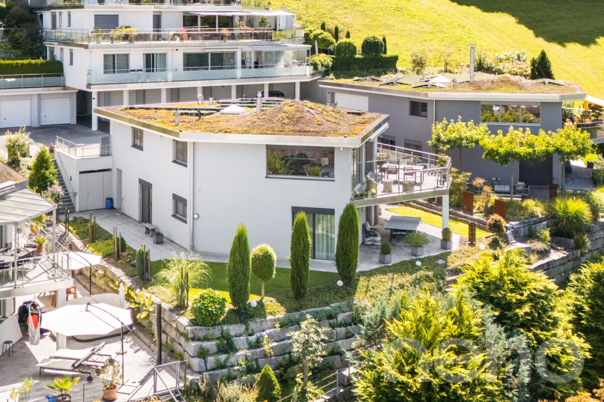 Die Liegenschaft befindet sich in ruhiger, erhöhter Wohnlage mit unverbaubarer Aussicht. Die Architektur ist klar und zeitlos, das Raumkonzept funktional und auf familiengerechtes Wohnen ausgerichtet.Das Einfamilienhaus wurde in solider Bauweise erstellt und laufend unterhalten. Die Grundrissgestaltung ist effizient, die Räume sind hell und gut proportioniert. Der Wohn- und Essbereich mit direktem Zugang zum Garten bildet das Zentrum des Hauses. Die Küche ist zeitgemäss ausgestattet und in das Raumgefüge integriert. Innen- und Aussenräume sind sinnvoll aufeinander abgestimmt.
