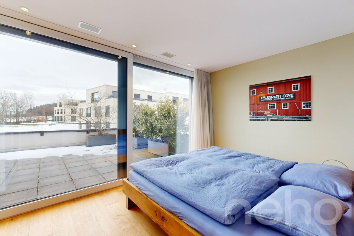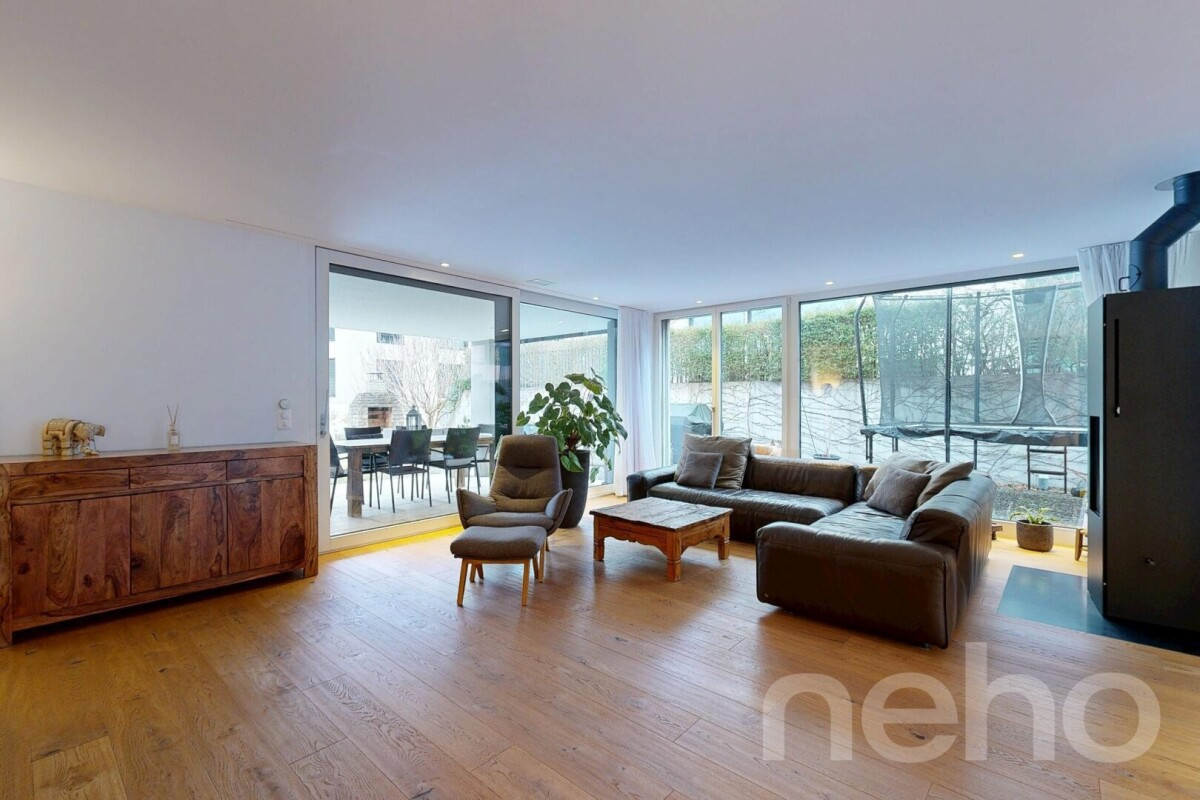 Dieses idyllische 6.5-Zimmer-Einfamilien-Eckhaus verteilt sich auf drei Etagen und bietet eine grosszügige beheizte Wohnfläche von rund 180 m² und ein Grundstück von 256 m². Die durchdachte Raumaufteilung, liebevolle Details, Garten mit viel Licht und die naturnahe Umgebung machen diese Immobilie zu einem besonderen Zuhause ? ideal für Familien oder Paare, die Ruhe, Komfort und Lebensqualität schätzen.  1. Obergeschoss  Das helle, grosszügige Wohnzimmer und der Essbereich mit Küche bilden das Herzstück des Hauses. Ein stilvoller Schwedenofen sorgt für Wärme und eine angenehme Atmosphäre. Von hier aus gelangt man direkt auf die Terrasse und in den sonnigen Garten ? eine einladende Atmosphäre ? perfekt für gemütliche Stunden mit Familie und Freunden mit Aussicht auf die Landwirtschaftszone. Ein zusätzliches Gäste-WC rundet das Angebot auf dieser Etage ab.   2. Obergeschoss ? RückzugsorteIm Obergeschoss befinden sich drei grosszügige Schlafzimmer und ein Badezimmer für die beiden Schlafzimmer sowie ein Hauptschlafzimmer mit eigenem Badezimmer. Eine südöstlich ausgerichtete Terrasse, die mit Sicht auf die Bergen und auf die Landwirtschaftszone zugänglich ist, bietet einen zusätzlichen Rückzugsort mit erhöhter Privatsphäre ? ideal zum Entspannen und Geniessen ruhiger Momente.  ErdgeschossIm Erdgeschoss befinden sich der Haupteingang, zwei Zimmer (eines mit Sauna), Badezimmer mit Dusche, Waschraum, Heizungsraum und Keller. Diese Etage bietet eine angenehme Kombination aus Komfort, Privatsphäre und Flexibilität für individuelle Bedürfnisse.Die Zimmer mit Fenster und Bodenheizung sind lichtdurchflutet, ruhig und vielseitig nutzbar ? perfekt als Spielzimmer, Büro oder Gästezimmer.
