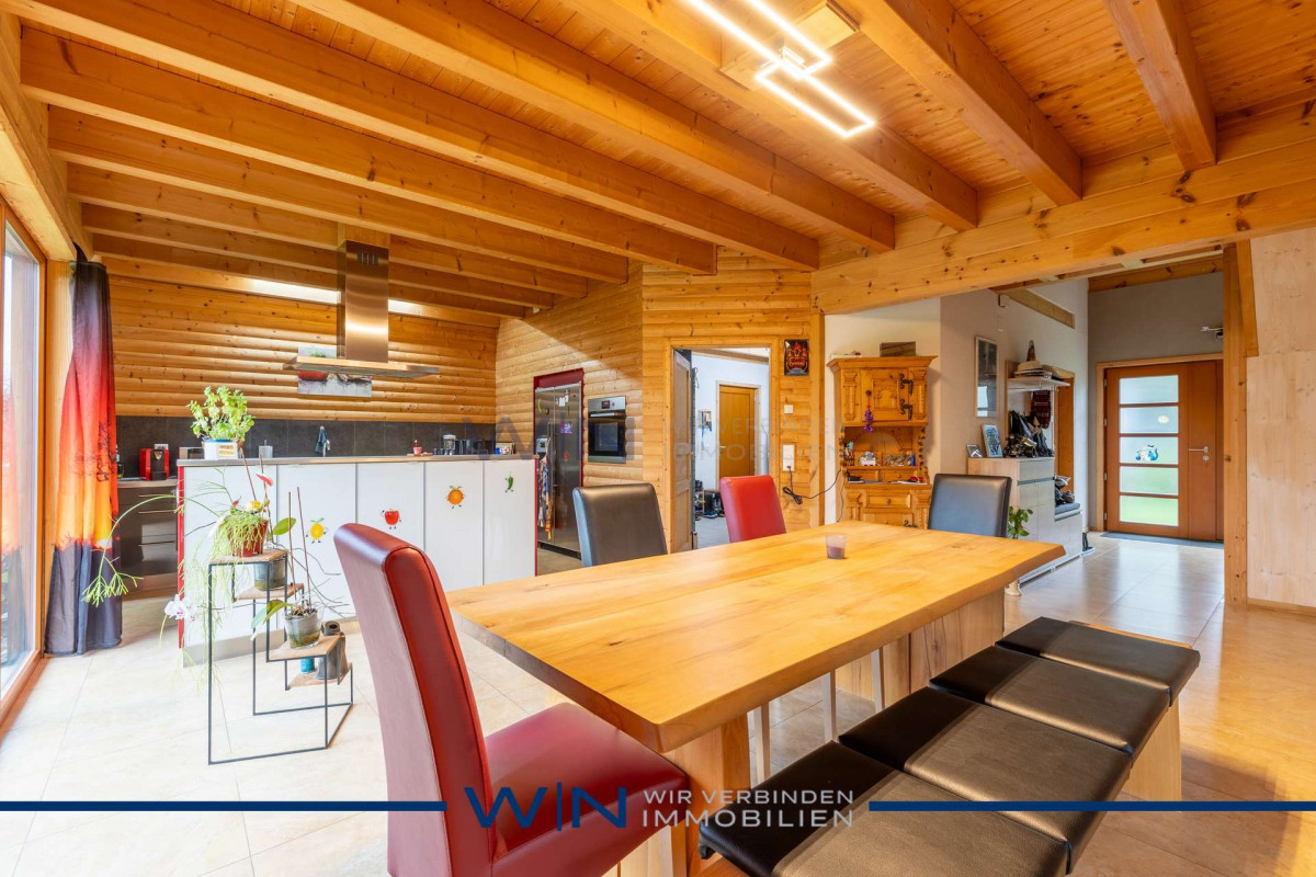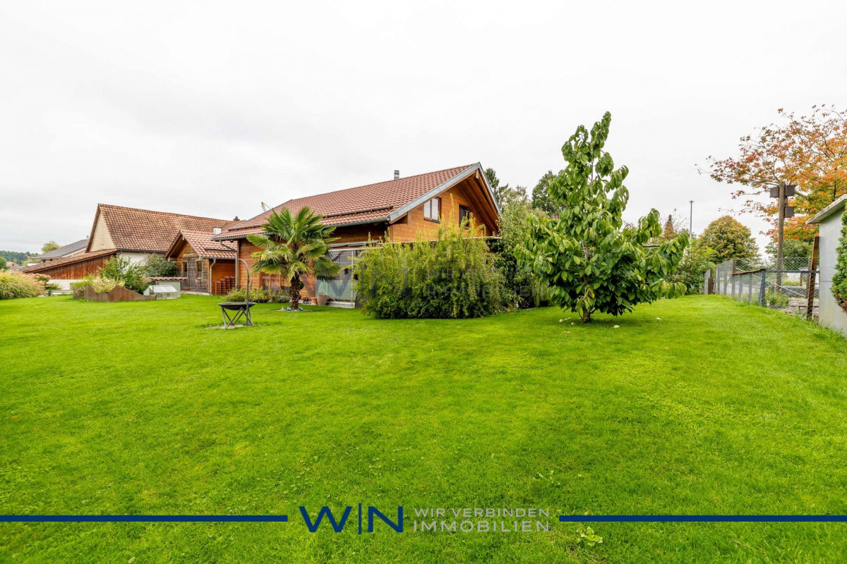 Dieses charmante Holzhaus bietet ein warmes und einladendes Zuhause für die ganze Familie. Die hellen Räume sorgen für eine freundliche Wohnatmosphäre und lassen viel Raum für individuelles Einrichten. Eine gemütliche Veranda lädt zum Verweilen ein und erweitert den Wohnraum nach draussen.