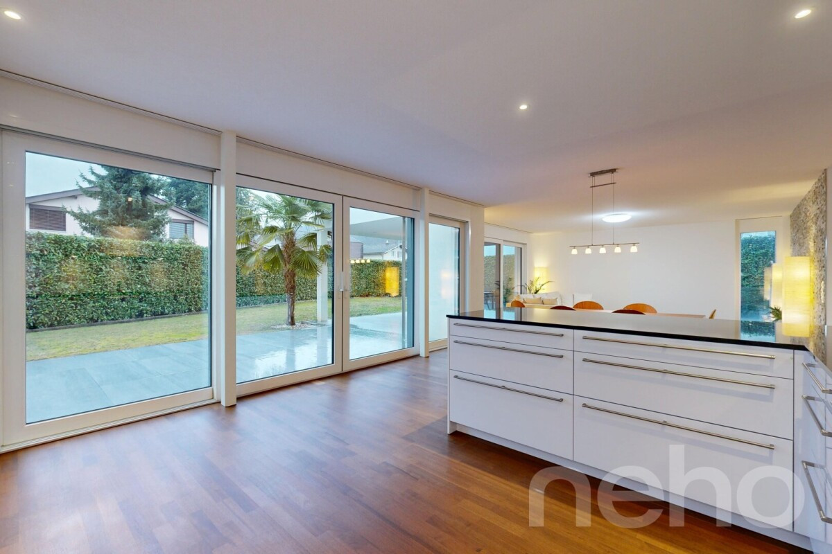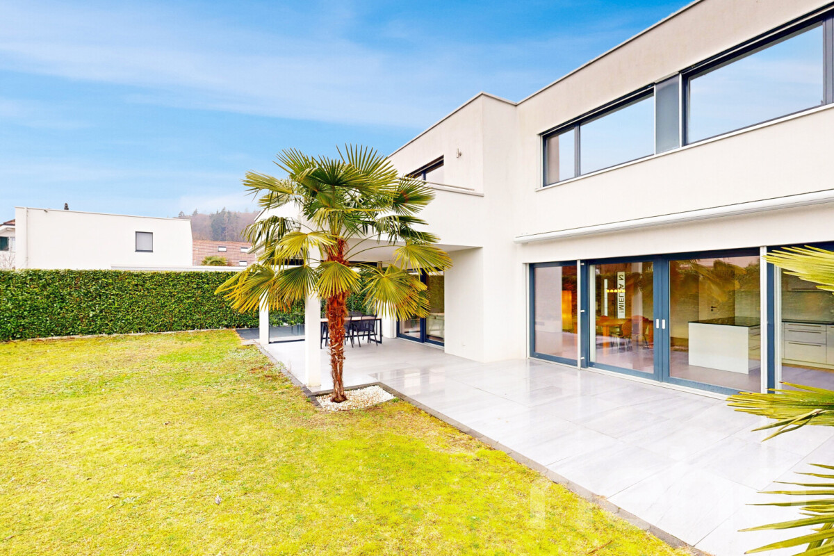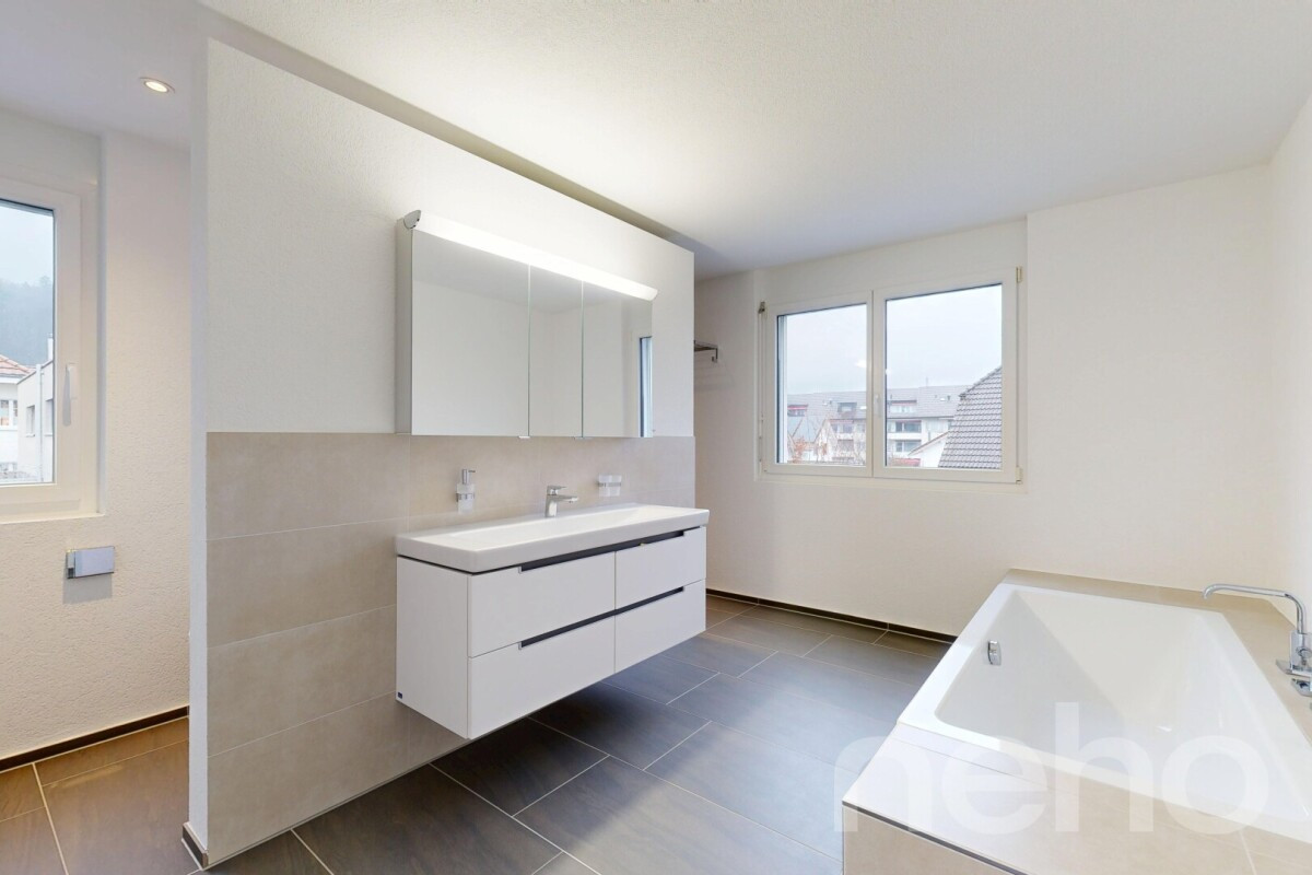 Dieses im Jahr 2015 erstellte 6.5-Zimmerhaus begeistert mit 200 m2 Nettowohnfläche, zeitgemässem Ausbaustandard sowie hervorragender Infrastruktur. Das Raumkonzept überzeugt durch Grosszügigkeit, klare Linienführung und lichtdurchflutete Bereiche dank grosszügiger Fensterfronten. Herzstück bildet die hochwertig ausgestattete Küche mit viel Arbeitsfläche, modernen Geräten sowie elegantem Design. Drei stilvolle Badezimmer mit Duschen und Badewanne bieten hohen Komfort. Im Wohnbereich setzt eine rustikale Steinmauer einen charaktervollen Akzent, während dimmbare Leuchten im Erdgeschoss eine stimmungsvolle Atmosphäre schaffen. Ein ausgebauter Kellerraum mit Sicherheitsglas im Untergeschoss erweitert die Nutzungsmöglichkeiten ideal. Das 688 m2 umfassende Grundstück präsentiert einen gepflegten Garten sowie eine 46 m2 grosse Terrasse mit Sonnen- und Windschutz - perfekt für entspannte Stunden im Freien. Zwei Garagenplätze sowie eine Enthärtungsanlage runden das Angebot ab. Die ruhige, familienfreundliche Lage nahe Kindergarten und Grundschule macht diese Immobilie besonders attraktiv.Haben wir Ihr Interesse geweckt? Nehmen Sie mit uns Kontakt auf - wir freuen uns, von Ihnen zu hören.