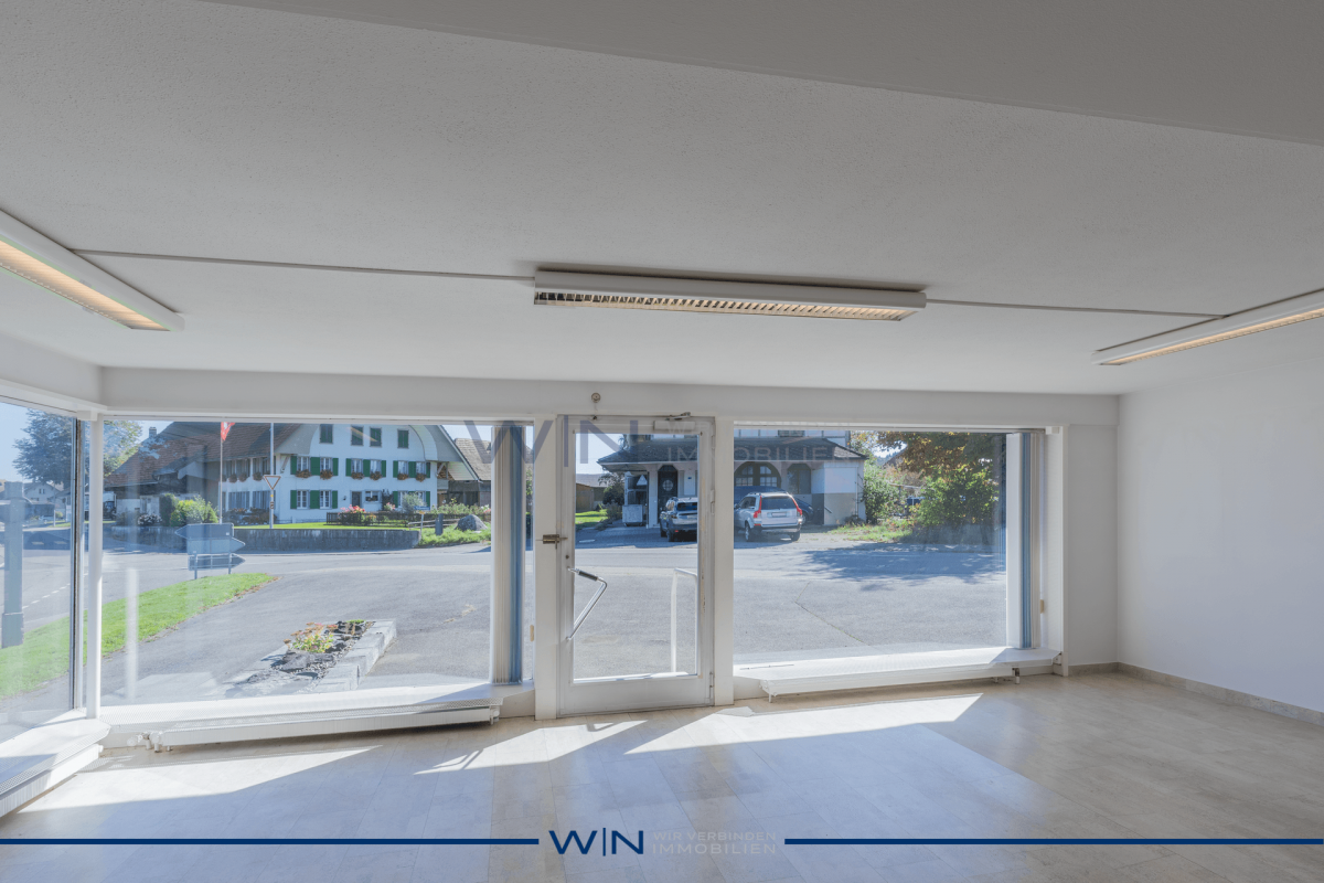 Im Erdgeschoss erwartet Sie ein Wohnteil mit vorgelagertem, grosszügigen Geschäftslokal, welches sich ideal für unterschiedliche Gewerbe eignet, sei es als Verkaufsfläche, Atelier, Praxis oder Büroräumlichkeit. Grosse Fensterfronten sorgen für die nötige Sichtbarkeit und viel natürliches Licht. Das 1. Obergeschoss beherbergt eine 3.5 Zimmer-Wohnung, welche über ein separates Treppenhaus erreichbar ist. Im Dachgeschoss befindet sich das Sahnehäubchen des Gebäudes - Ein grosser, hoher und nicht ausgebauter Dachstock.