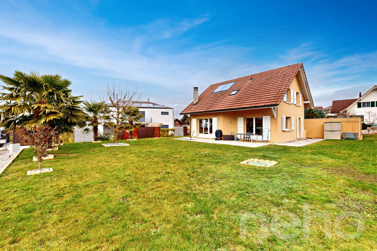 Maison individuelle avec grand jardin et garage !Charmante maison individuelle sur deux étages avec des combles isolés et un sous-sol entièrement aménagé. Elle est en bon état d'entretien général. Elle a été érigée sur une généreuse parcelle de 1'602 m2, située dans un chemin sans issue. En lisière de zone agricole, elle bénéficie d'un environnement calme et sans nuisances.Un garage...