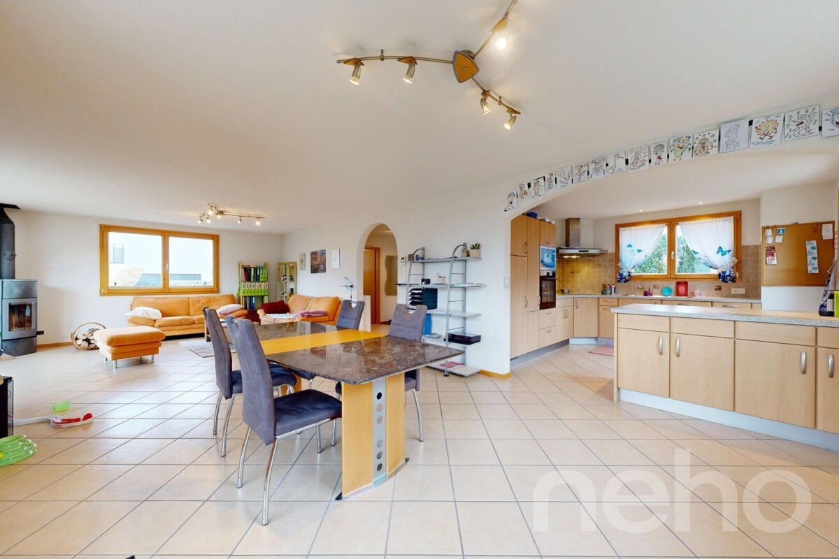 Splendide villa d'architecte avec magnifique jardin et vue sur la campCette splendide villa d'architecte est située dans un endroit calme et offre une belle vue sur la campagne et les Alpes. Très lumineuse et d'une conception bien étudiée, elle offre de beaux volumes. Le salon avec poêle suédois, le jardin avec terrasse et pergola, le sous-sol avec salle de loisirs, les hauts plafonds sont autant...