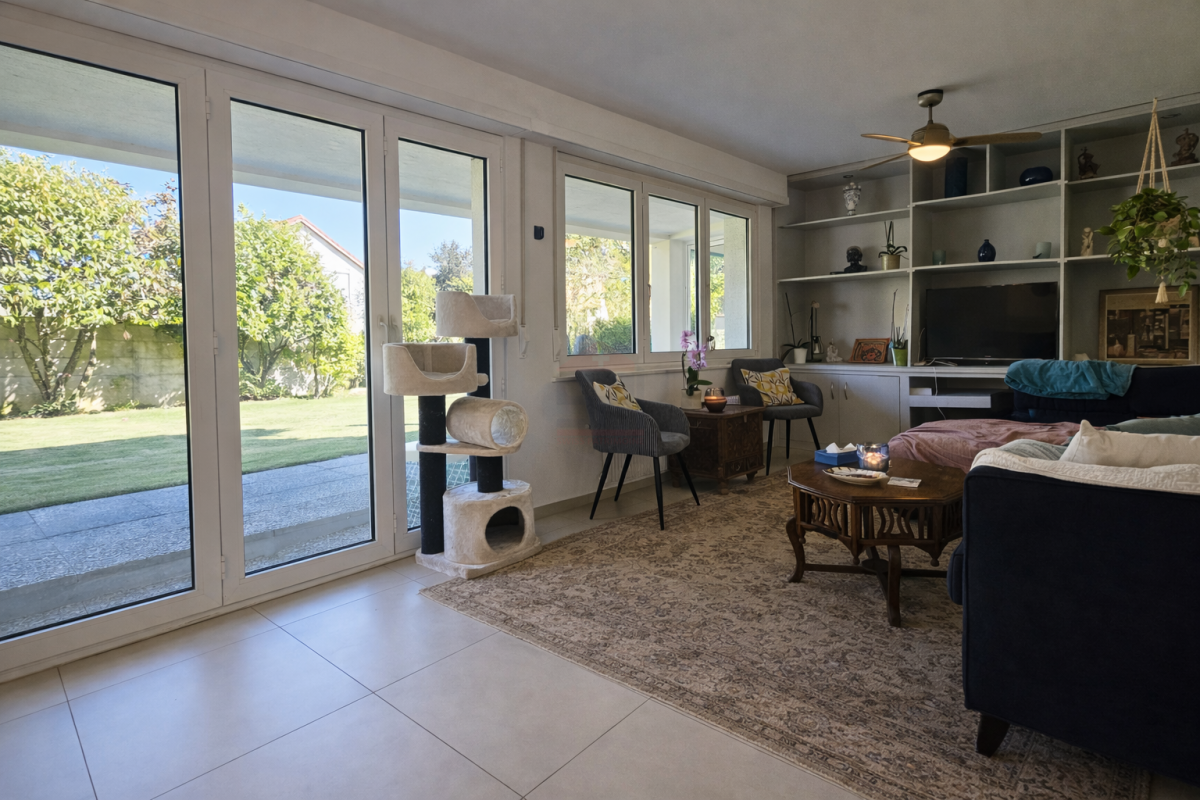 Le séjour offre par ailleurs un remarquable potentiel d'agrandissement grâce à sa connexion directe avec la terrasse. Une extension d'environ 20 m², ayant déjà fait l'objet d'une demande acceptée par le passé, permet d'envisager une valorisation des volumes de cet espace de vie, moyennant des travaux maîtrisés.