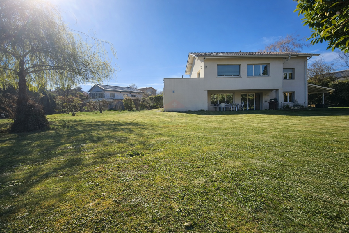 Implantée sur une magnifique parcelle plane de 1'448 m², la propriété profite d'une orientation particulièrement favorable, offrant une luminosité remarquable tout au long de la journée ainsi qu'un accès direct au jardin depuis les principales pièces de vie. Son vaste extérieur arboré constitue un véritable écrin de verdure, idéal pour une vie de famille ou pour profiter pleinement des beaux jours.