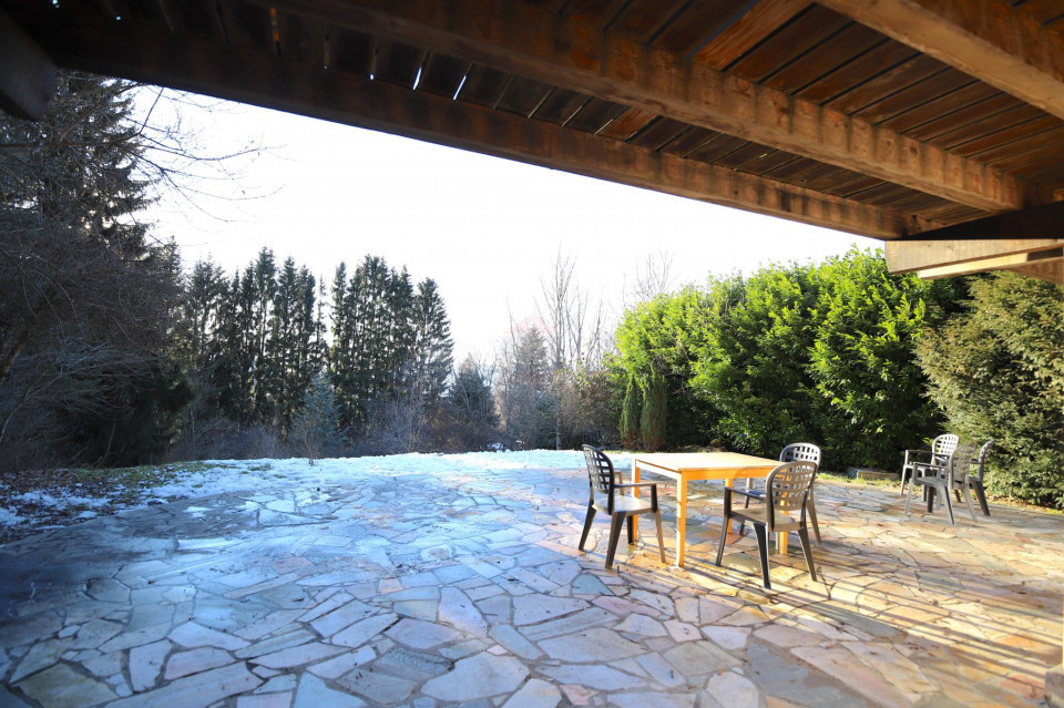 En exposition Sud-Ouest et sur son terrain piscinable de 1194 m2, ce chalet des années 60's a été rénové en 2000 tout en gardant son style traditionnel, sur 180 m2 habitables.