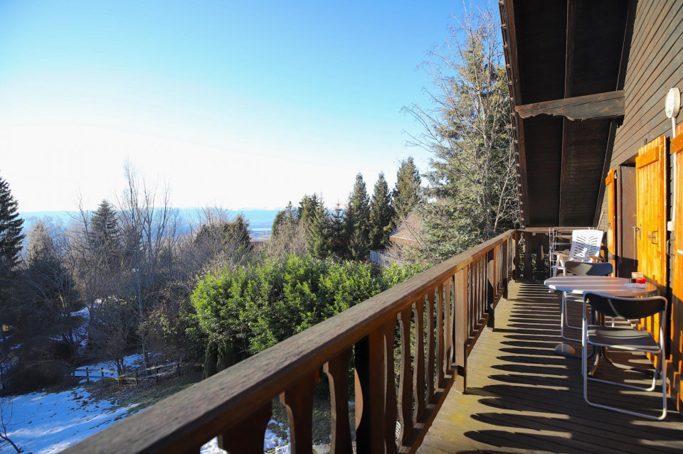 L'étage sous combles peut être utilisé en appartement indépendant de 4 pièces (2 chambres) ou se dessiner en partie nuit avec 3 chambres complétées des WC séparés, une salle de bain et d'une petite cuisine, idéale pour les petits déjeuners. Depuis le balcon bénéficiant d'une échappée sur le lac, on profite aussi des couchers de soleil.