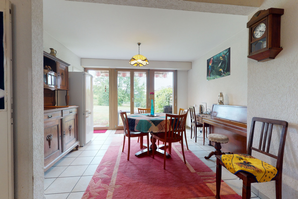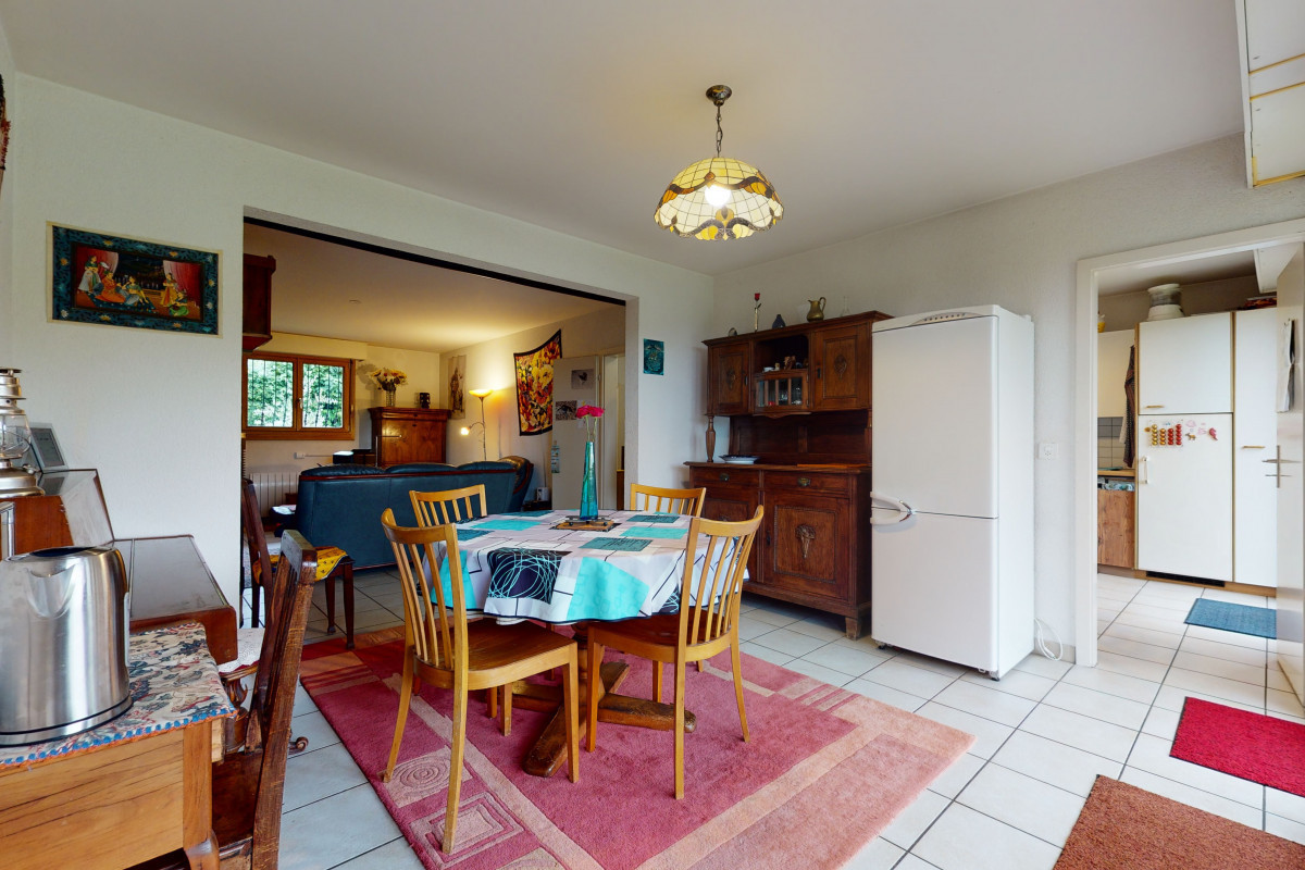 Située sur trois parcelles totalisant plus de 5'400 m² en zone agricole, cette propriété offre un cadre rare et un fort potentiel de transformation.La maison principale se compose d'une entrée accueillante prolongée par une véranda, d'un séjour lumineux, d'un salon, d'une cuisine indépendante (avec possibilité d'ouverture sur le séjour), ainsi que d'une salle de bain avec WC.À l'étage,...