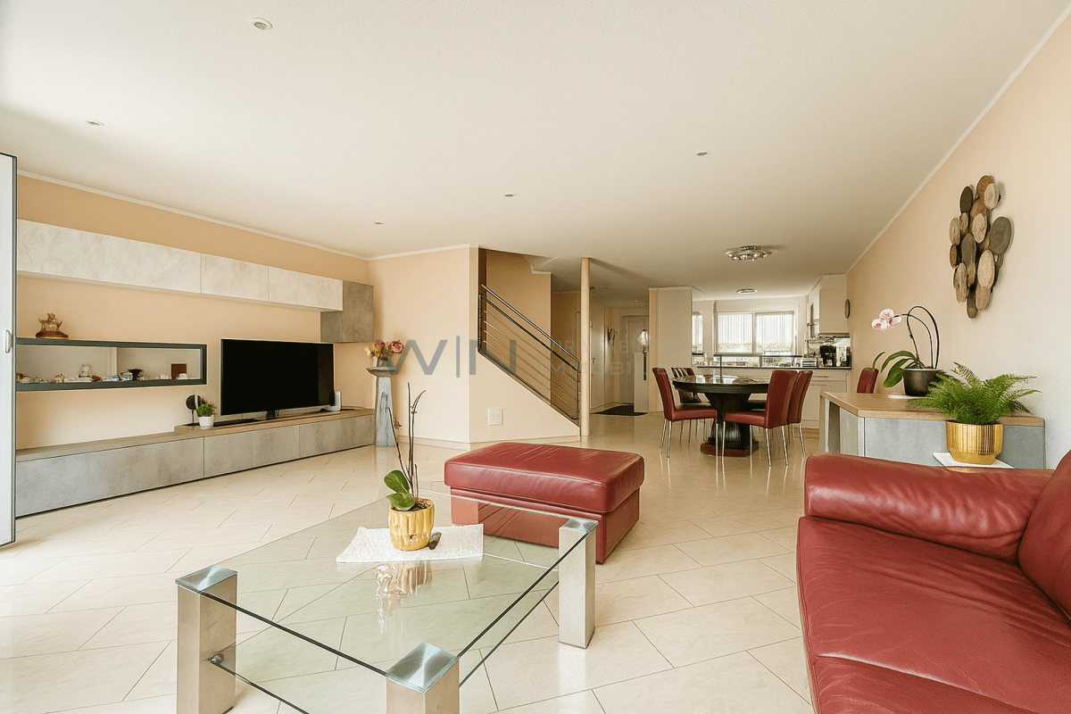 Dieses einladende 5.5-Zimmerhaus präsentiert sich als wahres Wohlfühlzuhause ? mit viel Platz, durchdachter Architektur und liebevollen Details. Der stilvolle Anbau mit grossen Fensterfronten erweitert den Wohnbereich und schafft ein besonders helles, offenes Ambiente. Eine sonnige Terrasse und der gepflegte Garten runden das harmonische Gesamtbild ab. Mit rund 171 m² Wohnfläche auf vier Etagen bietet dieses Haus ideale Voraussetzungen für Familien, die Wert auf Komfort und Wohnqualität legen.