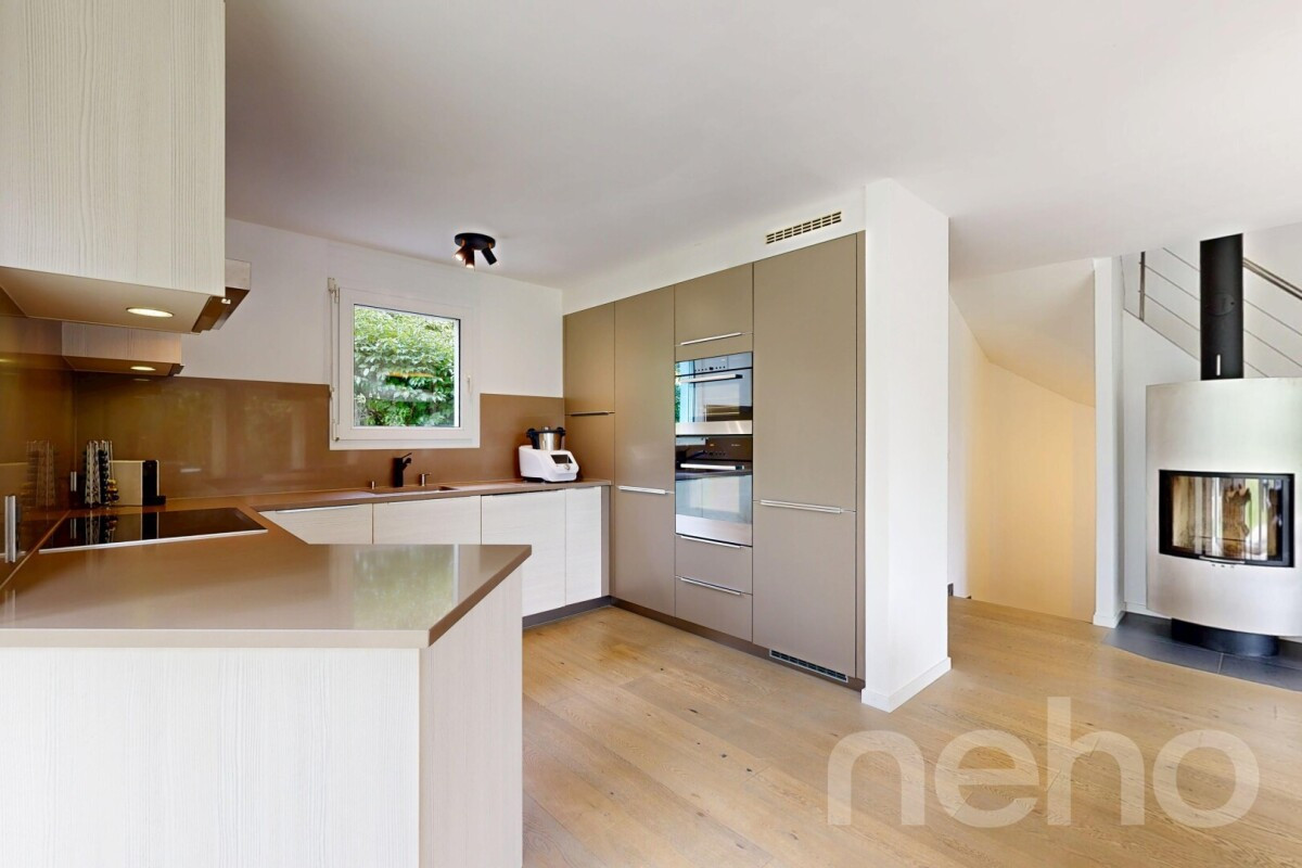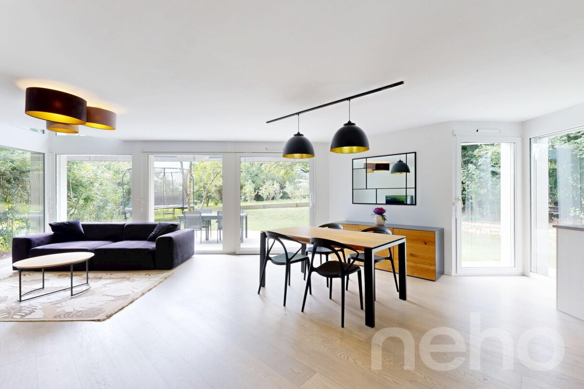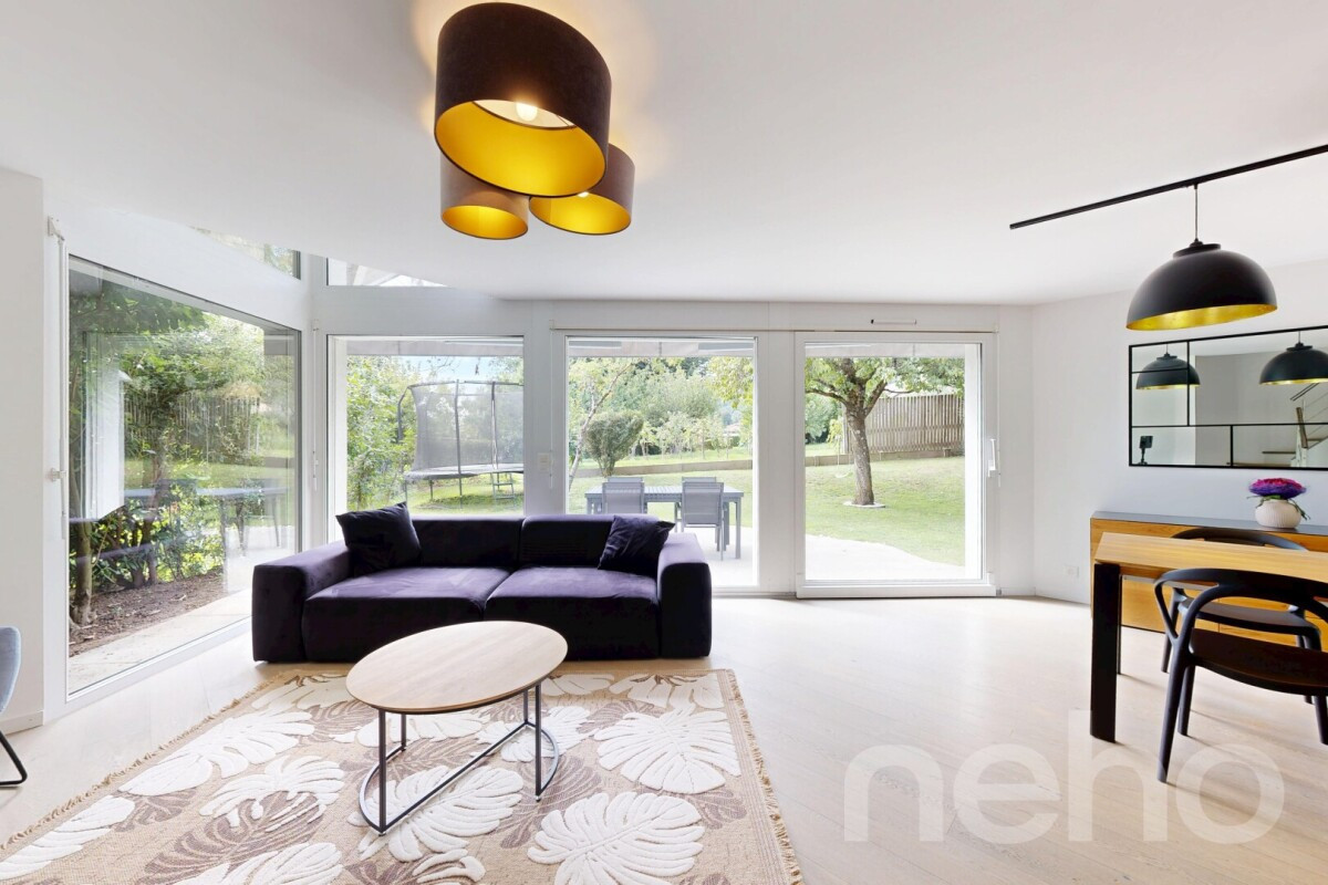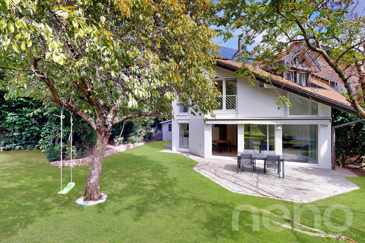 Maison lumineuse avec grand jardin à 5 min. de MorgesCette belle maison s'épanouit dans un quartier calme et résolument familial du village de Denens, elle bénéficie d'un vaste jardin parfaitement orienté et baigné de soleil toute la journée. Dès l'entrée, un espace accueillant avec armoire encastrée vous guide vers un grand séjour lumineux et chaleureux avec un poêle à bois, un espace...