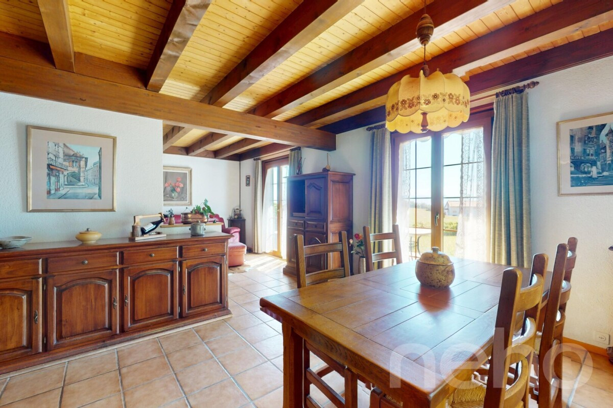 Dans un cadre bucolique, dans les hauts de la charmante commune de Gimel, cette maison individuelle séduit par sa luminosité et son atmosphère chaleureuse. Son beau jardin arboré, parfaitement exposé plein sud, invite à la détente et permet de profiter d'une vue dégagée sur la campagne environnante et les montagnes au loin. La situation au calme absolu en fait un lieu idéal pour savourer la sérénité tout en restant proche des commodités du village. Gimel offre un cadre de vie agréable pour les familles, avec des infrastructures utiles, des services de proximité qui facilitent le quotidien et un riche environnement naturel.