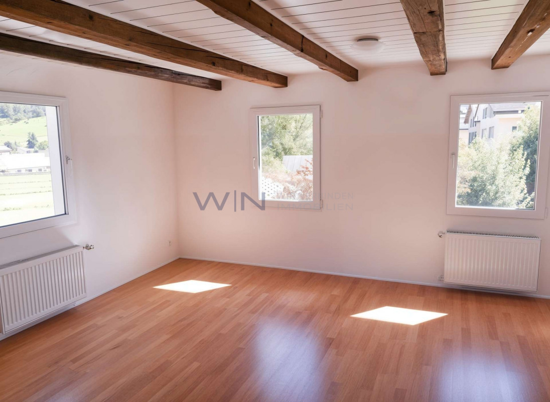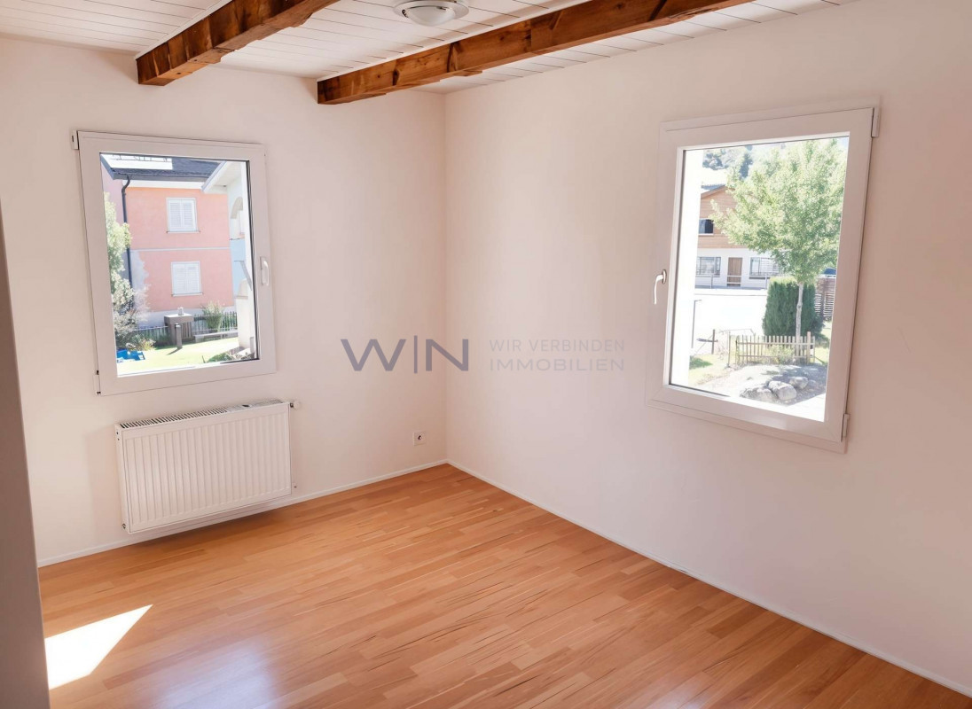 Meine Oase, mein Traum, mein Haus mit Garten und grosser Terrasse und all dies an einer wunderschönen sonnigen, ruhigen Lage mit Aussicht auf die Berge und die Landschaft. Ein Raumwunder, mit viel Liebe kernsaniert bis ins Detail.