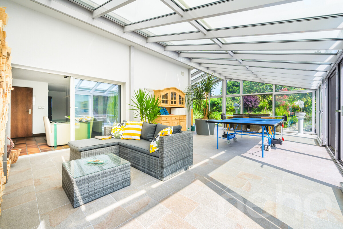 Die gesamte Anlage, vom Natursteinweg über lauschige Sitzplätze, bis zum eigenen Teich ist mit viel Liebe zum Detail gestaltet. Der Garten wurde über Jahre hinweg durch den Eigentümer mit grossem Engagement gepflegt und laufend weiterentwickelt. Der beheizte Wintergarten ist vollwertig nutzbar und erweitert den Wohnraum auf elegante Weise. Hier wohnen Sie mit viel Lebensqualität.