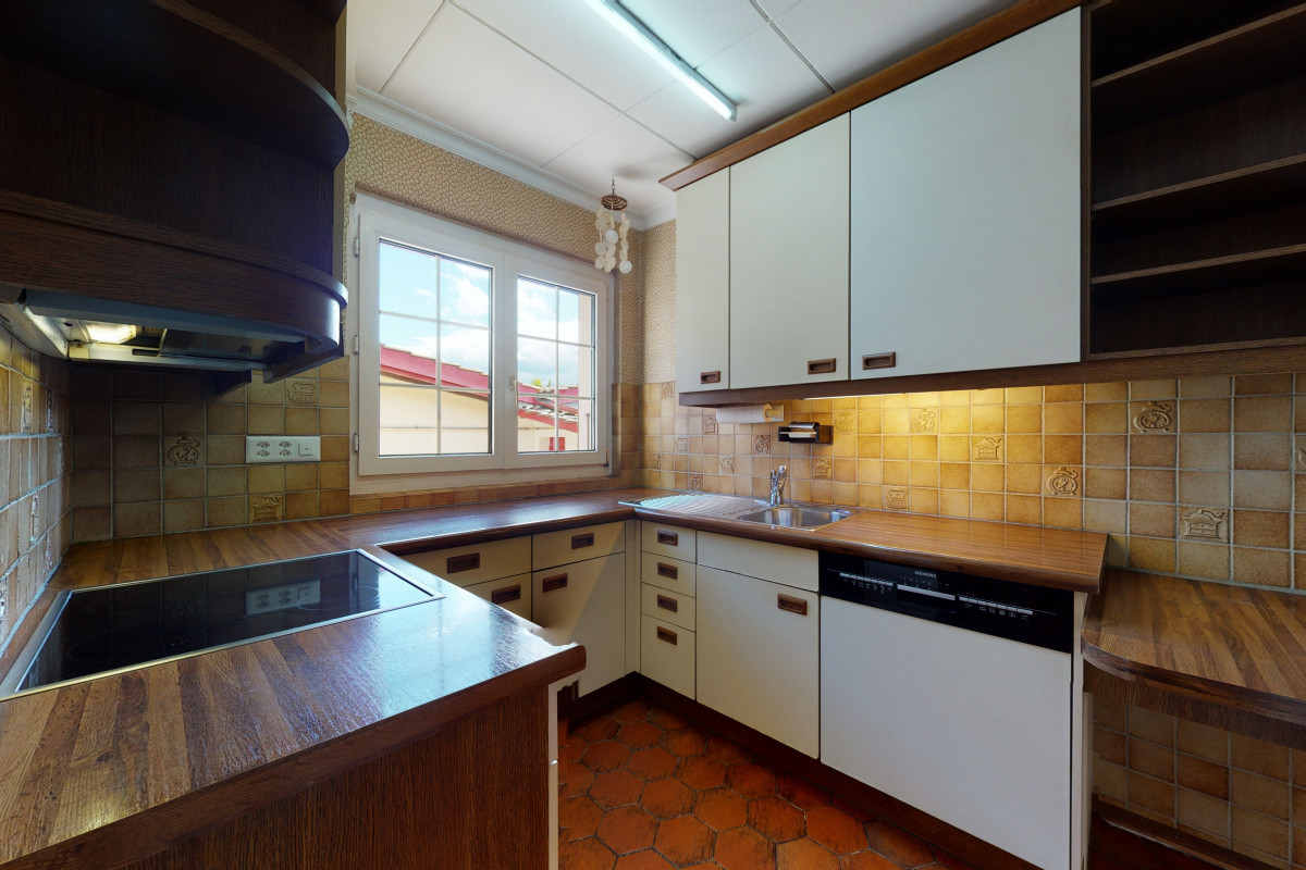 Elle est distribuée sur 3 niveaux, car elle est semi-excavée et nécessite de quelques travaux de rénovation.