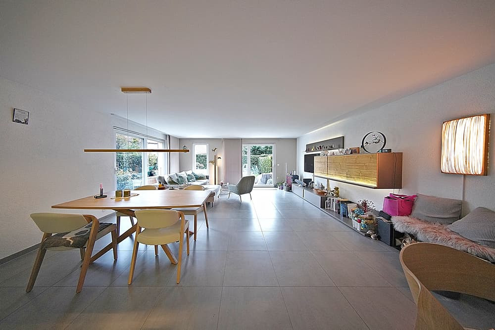Située dans le charmant village de Grens, au calme et à 5 minutes de Nyon, cette très jolie villa mitoyenne en pignon de 158 m² habitables pour 316 m² utiles, offre de beaux espaces de vie et de belles prestations.