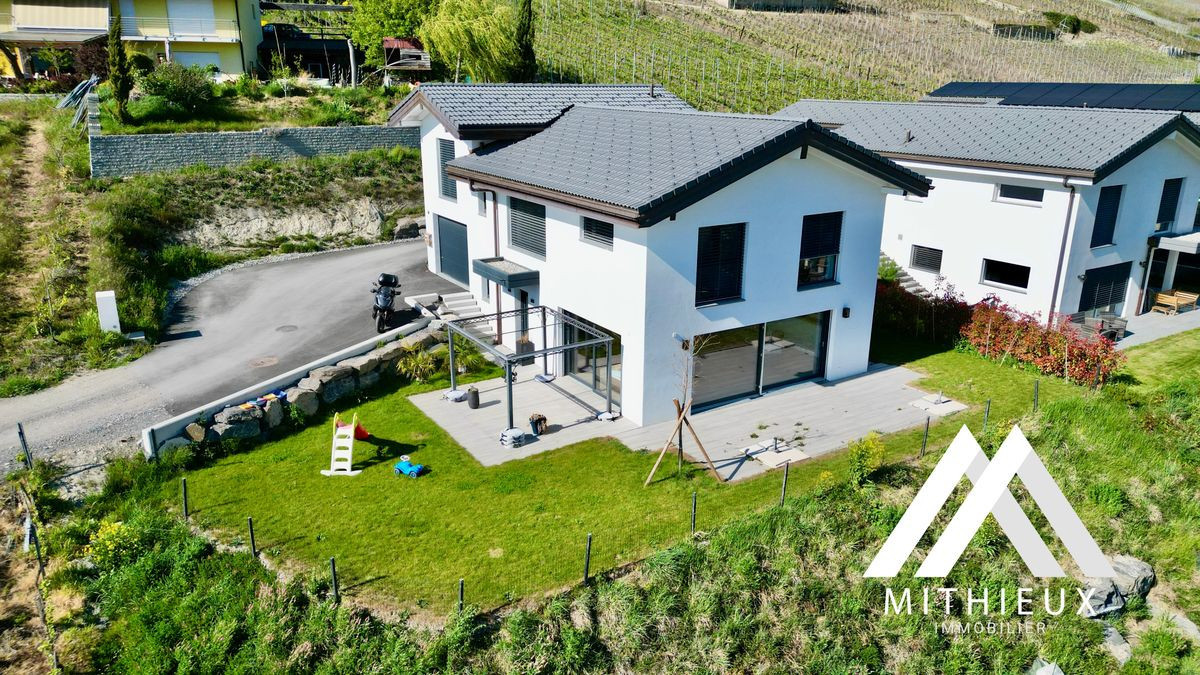 Nous vous proposons à la vente cette magnifique villa moderne d'architecte de 6.5 pcs, construite en 2023 au fond d'une impasse, sur une parcelle d'exception de 680 m2 à Grimisuat, au coeur du hameau de Champlan.