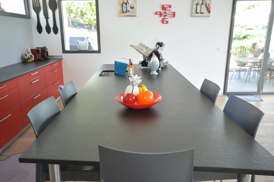 - Une superbe cuisine agencée d'un magnifique bar en gré prolongeant le plan de travail en open space