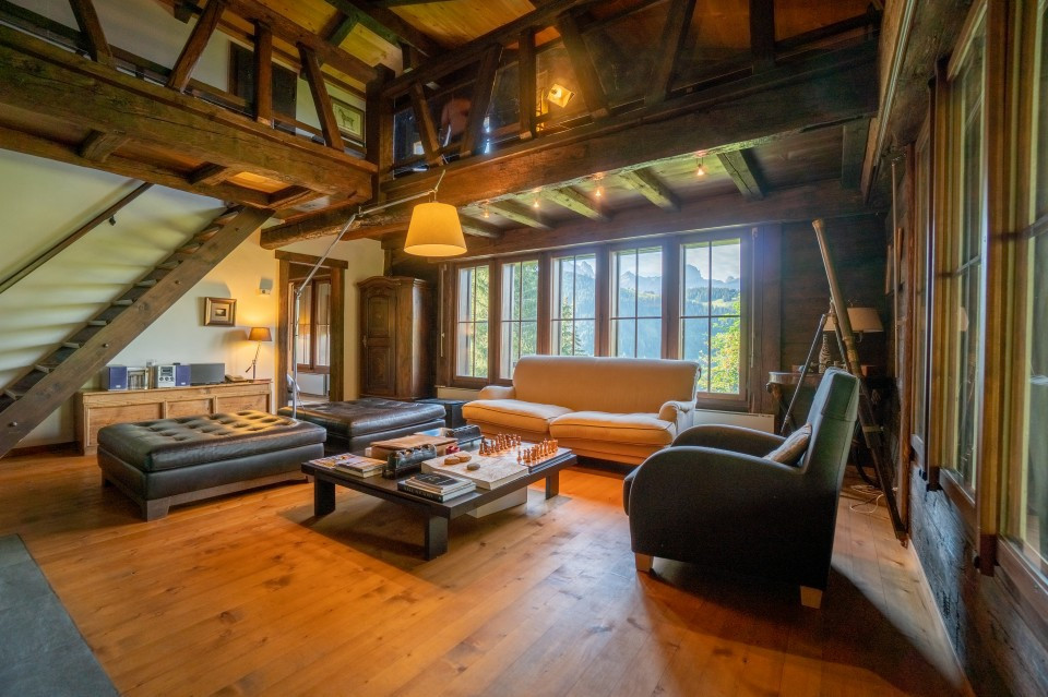 Divers: Sans vis-à-vis, joli jardin. Vue extraordinaire sur les montagnes. Cet objet offre 1 parcelle de terrain non-constructible supplémentaire indépendante de 3106m2. Ce qui privilégie encore le côté tranquille de l'endroit. Magnifique endroit proche de la piste de ski.