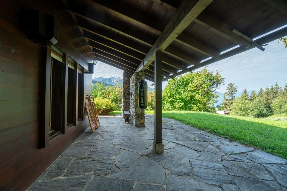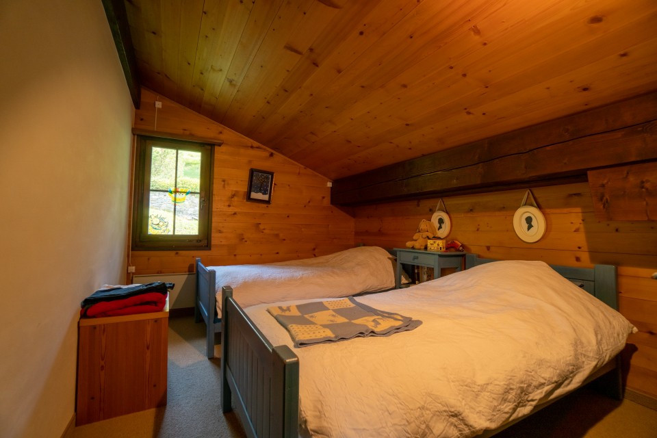 Description : Charmant chalet de 5.5 pièces offrant de beaux volumes. Hall d'entrée avec un grand réduit.. Une belle cuisine totalement équipée, une salle à manger offrant une sortie la terrasse couverte, spacieux salon avec sa belle cheminée, grandes baie vitrées. Une chambre parentale avec armoires intégrées, salle de douche/WC en suite. Une chambre au nord avec armoires intégrées. Une salle de douche/WC, double lavabo. 1er étage : une galerie surplombant le salon, peut servir d'espace TV, ou de bibliothèque. Deux chambres mansardées avec armoires intégrées. Un WC séparé. Un grand réduit..