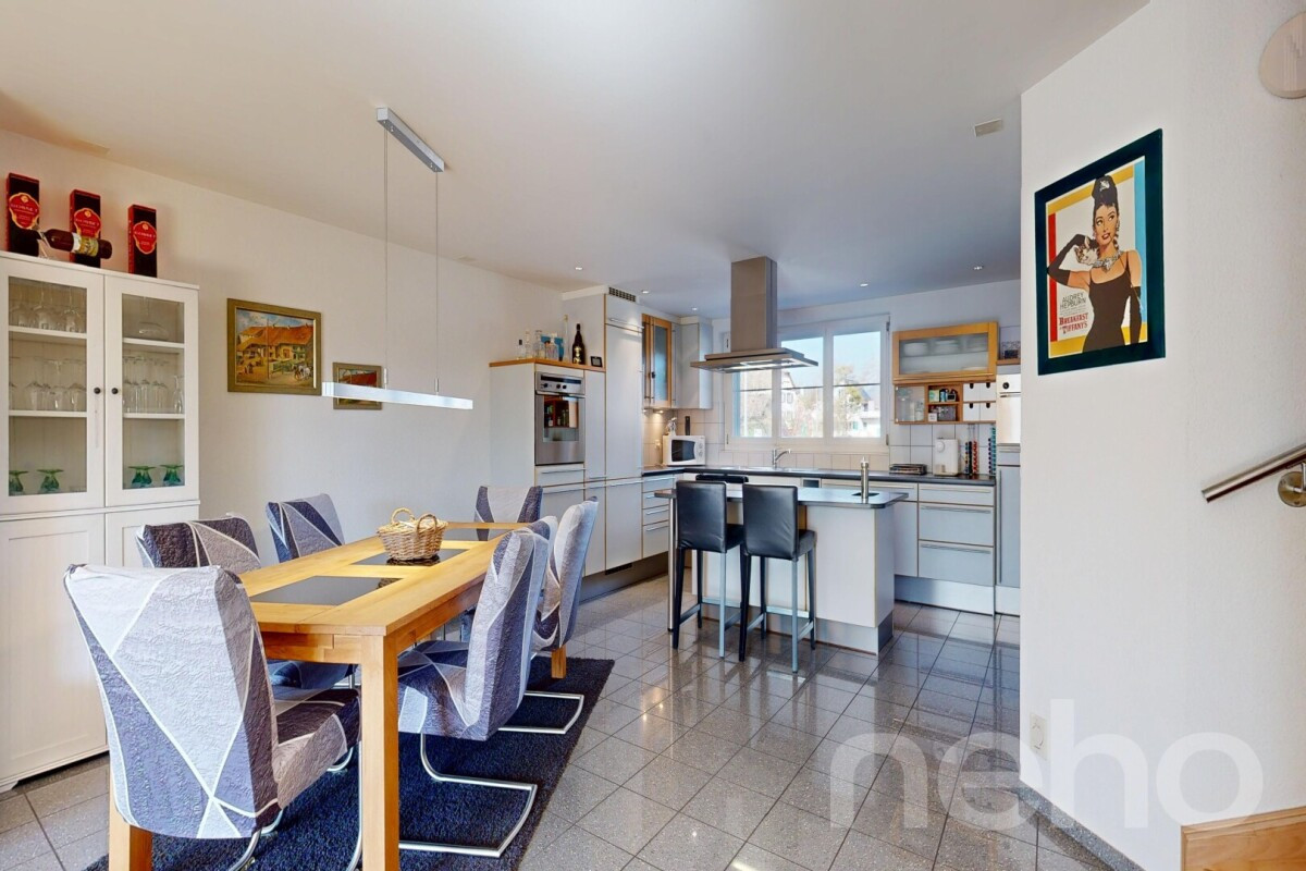 Entdecken Sie dieses exquisite Zuhause, das auf vier Stockwerken ein einzigartiges Wohnerlebnis bietet. Mit einer beeindruckenden Westausrichtung und einer Wohnfläche von 144 m² lädt dieses Haus mit 5.5 geräumigen Zimmern zum Wohlfühlen ein. Geniessen Sie die warme Atmosphäre des grosszügigen Wohn- und Essbereichs, der durch die offene Küche ergänzt wird.Die Immobilie wurde im Jahr 1999 erbaut und präsentiert sich in einem sehr gepflegten Zustand und ist mit modernen Annehmlichkeiten ausgestattet: Ein zentraler Staubsauger, eine Entkalkungsanlage sowie ein praktischer Wäscheabwurf bieten höchsten Komfort. Die Wärmeverteilung erfolgt über eine effiziente Fussbodenheizung, während die Fernwärme für nachhaltige Energieerzeugung sorgt. Ein Schwedenofen verleiht dem Wohnzimmer eine behagliche Note.