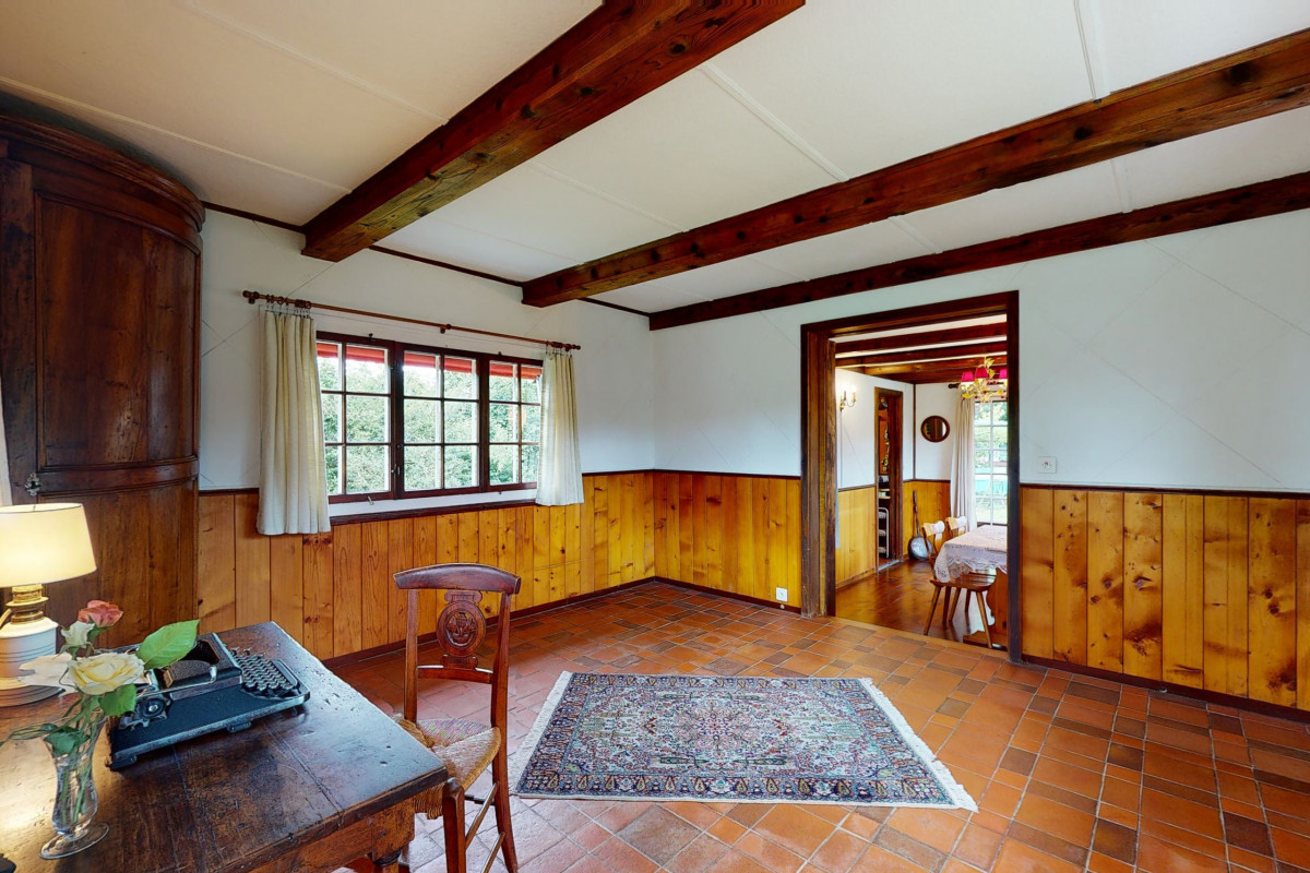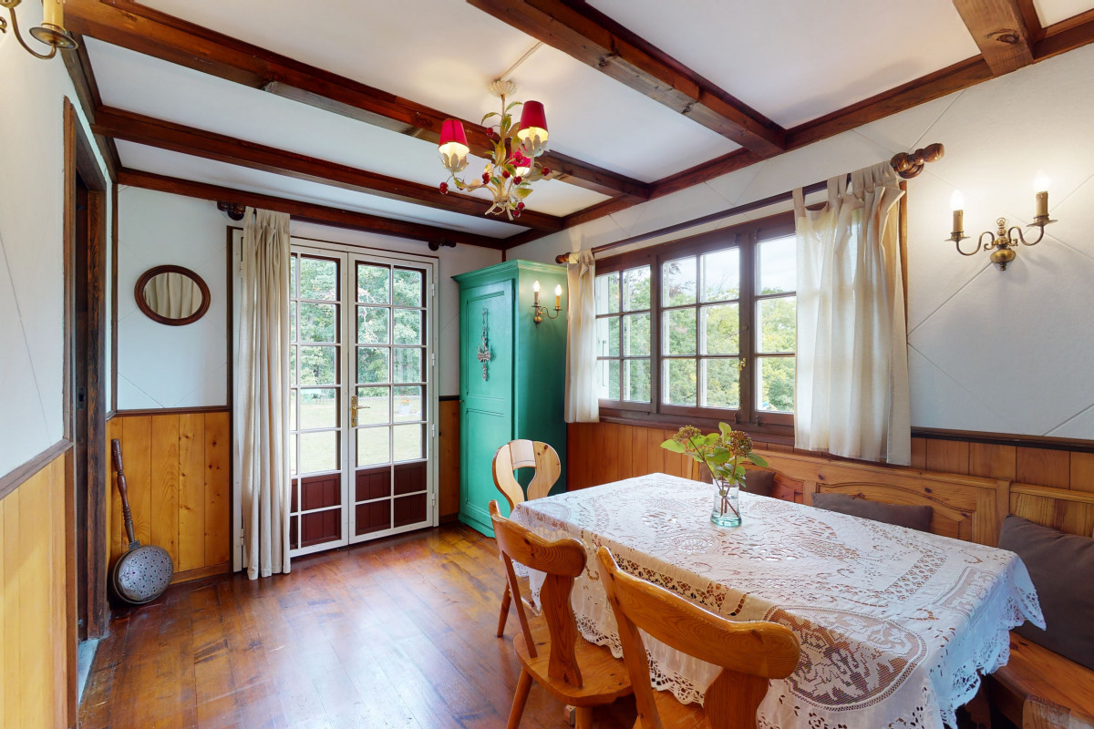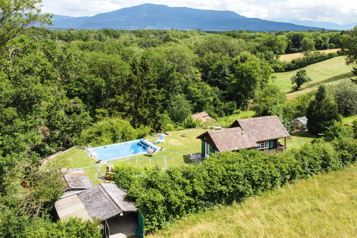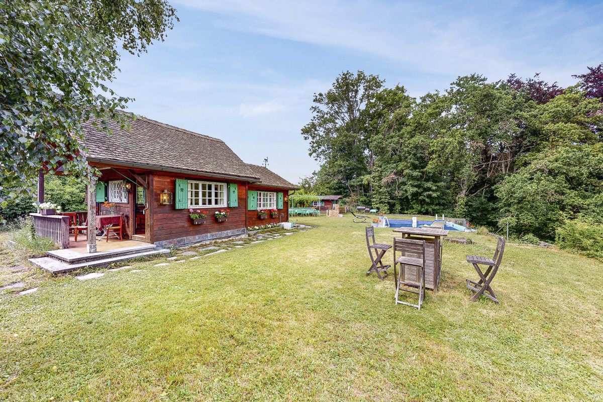 Located on a vast plot of land in an agricultural zone, this chalet enjoys an absolutely quiet environment facing the Hermance forest, only 5 minutes from public transport and 15 minutes from downtown Geneva. The current construction, always well maintained, measures nearly 35 m² on the ground with the possibility, subject to authorization, to enlarge the living space by 30%. Pool, pergola, garage and storage room... To be discovered!