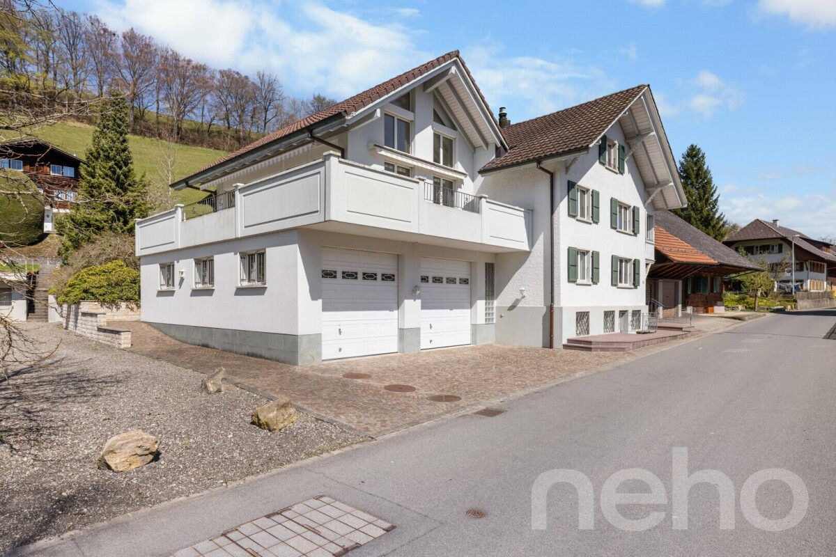 Ein Haus, das mehr ist als nur Wohnraum ? was wäre, wenn Sie Platz hätten für mehrere Generationen, Homeoffice, Gäste und Ihre ganz persönlichen Wohnideen?Dieses grosszügige 8-Zimmer-Einfamilienhaus an der Allmendstrasse 13 in 4950 Huttwil überzeugt mit einer aussergewöhnlichen Kombination aus Raum, Flexibilität und gepflegtem Zustand. Auf rund 243 m² Wohnfläche und einem 787 m² grossen Grundstück entfaltet sich ein durchdachtes Wohnkonzept über vier Etagen, wobei drei davon als Wohnetagen genutzt werden.Im Erdgeschoss erwartet Sie eine moderne, hochwertig ausgestattete Küche, ein gemütliches Wohnzimmer sowie ein Büro mit Einbauschränken, ein Badezimmer und ein Schlafzimmer. Die erste Obergeschoss-Etage bietet ein grosszügiges Wohnzimmer mit Cheminée und Zugang zum Dachgeschoss, ein weiteres Schlafzimmer, ein Badezimmer sowie einen vielseitig nutzbaren Anbau mit Zugang zu einer grossen Terrasse und einer eigenen voll ausgestatteten Küche.Das Dachgeschoss beherbergt einen Estrichbereich, ein Schlafzimmer sowie ein Badezimmer mit Sauna, Whirlpool-Badewanne und Doppellavabo.Im Untergeschoss befinden sich Technikraum, Waschküche, Kellerräume sowie eine grosse Garage mit Platz für bis zu vier Fahrzeuge und hoher Raumhöhe, ideal auch für Wohnwagen oder grössere Fahrzeuge.Der liebevoll gestaltete Garten mit 541 m² Fläche, Teich, Brunnen und Gartenhaus schafft eine naturnahe Oase der Ruhe. Die Liegenschaft verfügt über eine eigene Wasserversorgung aus einer privaten Quelle. Die Liegenschaft ist solide gebaut, gut unterhalten und bietet dank flexibler Raumstruktur auch die Möglichkeit einer späteren Aufteilung in zwei separate Wohneinheiten. Zudem besteht die attraktive Option, das angrenzende Grundstück zu erwerben, welches als Bauland genutzt werden kann und weiteres Entwicklungspotenzial eröffnet. Beheizt wird das Haus über eine zuverlässige Ölheizung mit Radiatoren und teilweise Fussbodenheizung im Anbau. Das gut isolierte Mauerwerk sorgt für eine gute Isolation und ein angenehmes Wohnklima.Ein ideales Zuhause für Familien, Mehrgenerationenwohnen oder Menschen mit Platzbedarf und Vision.