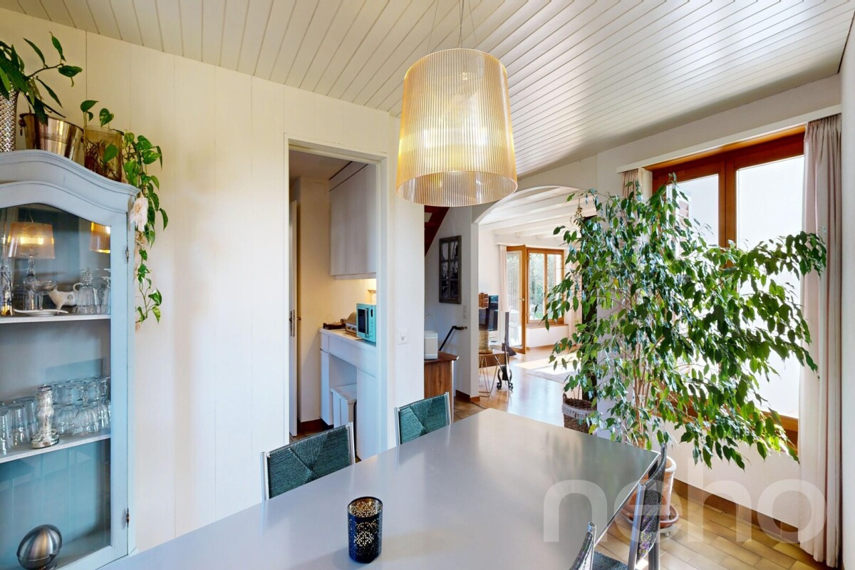 Entdecken Sie ein Zuhause, das sich durch seine exzellente Belichtung und eine helle Wohnatmosphäre auszeichnet. Diese Immobilie befindet sich in einem guten Gesamtzustand, der Ihnen den Komfort bietet, die Sie sich wünschen. Die südliche Ausrichtung sorgt für reichlich Sonnenlicht, das das ganze Hauses durchflutet.Mit einer Nettowohnfläche von 133 m² bietet dieses Haus auf 657 m² Land ausreichend Platz für Ihre Familie. Die 4,5 Zimmer verteilen sich harmonisch über zwei Ebenen und bieten vielfältige Nutzungsmöglichkeiten. Drei Schlafzimmer bieten Rückzugsorte der Ruhe, während zwei Bäder modernen Komfort gewährleisten.Dieses Haus vereint Funktionalität mit Wohnkomfort und ist ideal für all jene, die einen gepflegten Lebensraum suchen. Die einladende Atmosphäre lädt zum Entspannen und Geniessen ein, während die grosszügigen Fenster den Wohnbereich in Wohlfühllicht tauchen.Zögern Sie nicht länger: Kontaktieren Sie uns noch heute, um eine Besichtigung zu vereinbaren und erleben Sie selbst den Charme dieses wunderschönen Zuhauses.