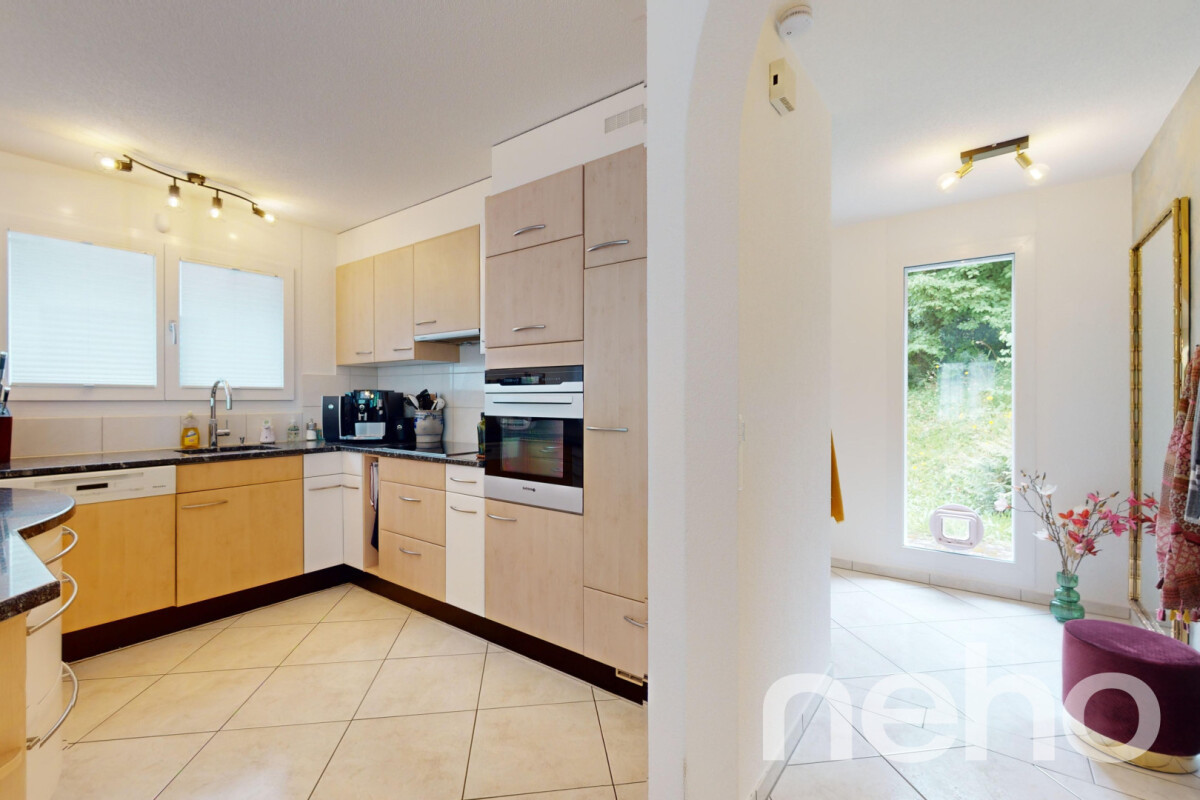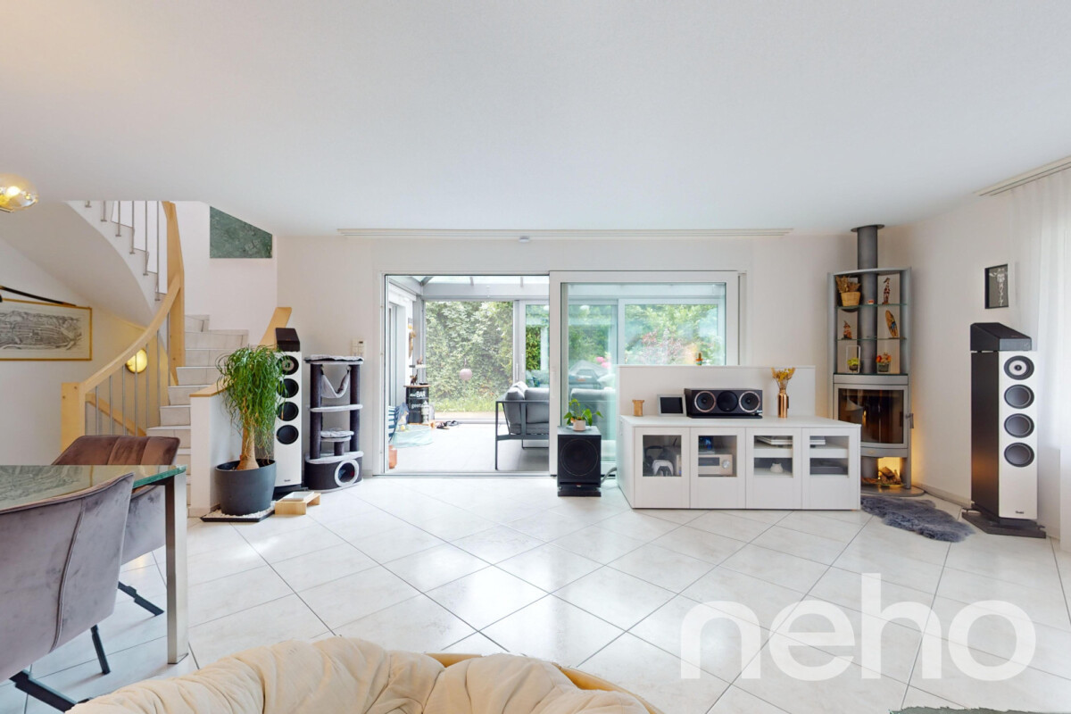 In ruhiger, sonniger Lage in Kaufdorf entfaltet dieses Einfamilienhaus mit Einliegeroption seinen besonderen Charme. Lichtdurchflutete Räume, hochwertige Materialien und ein stimmiges Raumkonzept schaffen ein Zuhause, das Paare, Familien und Mehrgenerationen gleichermassen begeistert. Im grosszügigen Wohnzimmer mit stilvollem Schwedenofen entsteht behagliche Wärme, die komplett ausgestattete Küche sowie zwei moderne Badezimmer mit Wellnessdusche und luxuriöser Eckbadewanne bieten Komfort auf hohem Niveau. Der helle Wintergarten mit zusätzlichem Schwedenofen und Klimaanlage erweitert den Wohnraum, während der private Aussenbereich mit Jacuzzi jeden Tag zum Wohlfühlmoment macht. Ein smartes Homematic IP System ermöglicht die bequeme Steuerung per App.