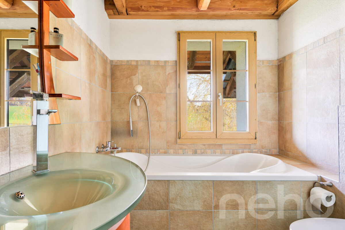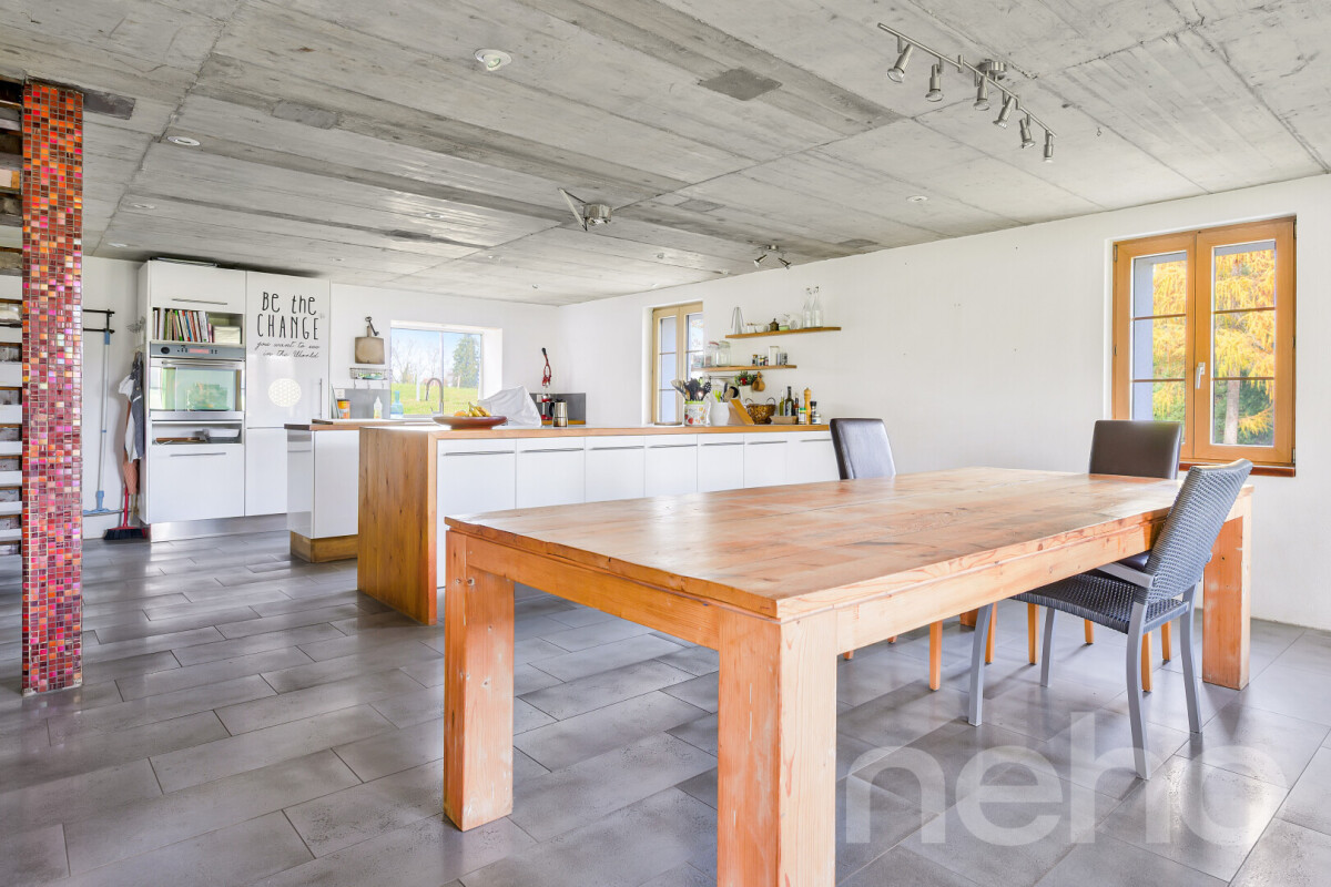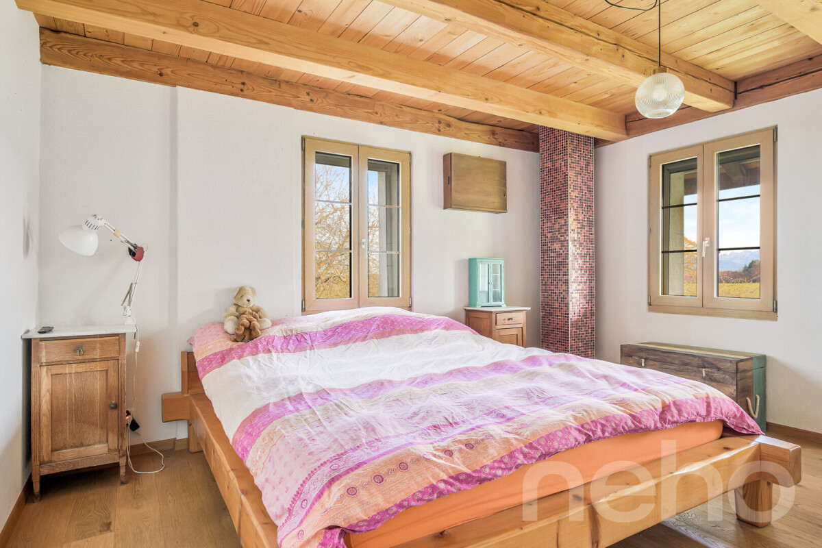 Découvrez cette magnifique maison baignée de lumière, offrant une exposition idéale et un potentiel exceptionnel. Nichée sur un terrain de près de 4500 m², elle propose un cadre de vie unique avec son jardin spacieux et sa vue dégagée sans vis-à-vis.Répartie sur trois niveaux, cette demeure se compose de six pièces dont trois chambres et quatre salles de bains. L'intérieur comprend un appartement de 4 pièces et demie, ainsi qu'un grand duplex de 150 m² avec une impressionnante hauteur sous plafond, parfait pour organiser des événements festifs. Un studio de 32 m² vient compléter cet ensemble harmonieux.Cette ancienne grange rénovée conserve le charme d'antan tout en offrant la possibilité d'une modernisation énergétique grâce à une pré-installation pour pompe à chaleur.Contactez-nous dès aujourd'hui pour planifier une visite et découvrez par vous-même le charme exceptionnel de ce bien rare.