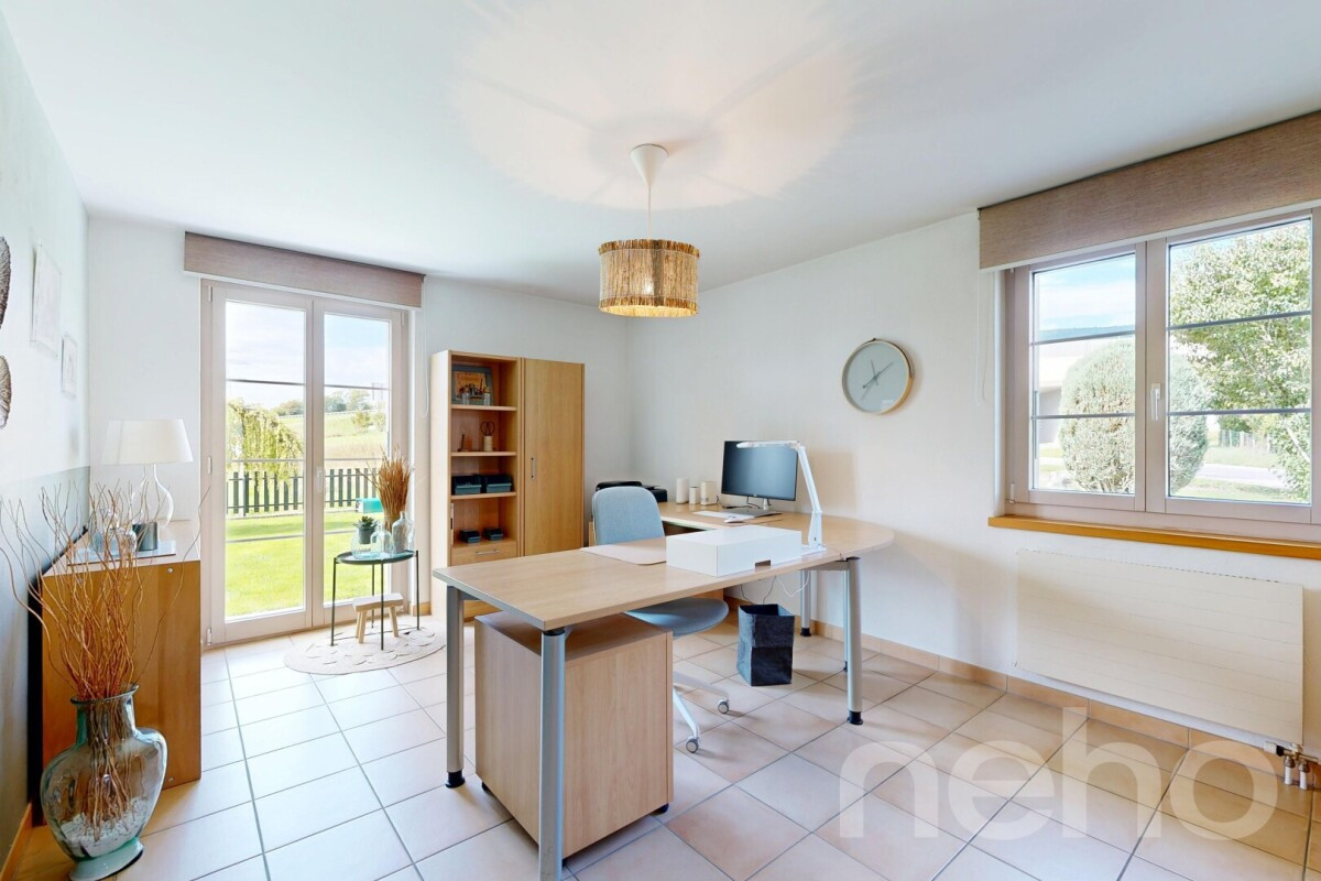 Située dans un quartier résidentiel très prisé de Thielle, à proximité immédiate des écoles, des commerces et des principaux axes de communication, cette superbe maison individuelle offre un cadre de vie idéal pour une famille à la recherche d'espace et de confort. Développant une surface habitable d'environ 236 m² répartie sur trois niveaux, la propriété séduit par ses volumes généreux, sa luminosité et la qualité de ses aménagements. Le rez-de-chaussée propose un vaste espace de vie d'environ 122 m² comprenant un lumineux séjour de 53 m² avec cheminée ainsi qu'une cuisine ouverte entièrement équipée avec des appareils Siemens, l'ensemble donnant accès direct à une terrasse couverte de 41 m² et à un agréable jardin paysagé de 485 m² orienté sud-ouest, idéal pour profiter pleinement des extérieurs. Un bureau complète harmonieusement ce niveau. L'étage accueille quatre chambres spacieuses d'environ 18 m² chacune, dont une avec dressing, ainsi que deux salles de bains modernes équipées d'une baignoire et d'une douche, tandis que la charpente apparente confère beaucoup de charme et de volume aux pièces. Le sous-sol entièrement aménagé comprend une buanderie, une cave, un local technique ainsi qu'un vaste espace polyvalent de 49 m² pouvant être utilisé comme salle de jeux, home cinéma, espace fitness ou studio indépendant. La maison dispose d'un chauffage au mazout avec une chaudière installée en 2002, d'un contrôle électrique OIBT réalisé en 2023, ainsi que de deux places de parc couvertes et deux places extérieures. Une opportunité rare sur le marché, parfaite pour une famille souhaitant s'installer dans un environnement calme et recherché tout en bénéficiant de prestations de qualité et de beaux espaces de vie.